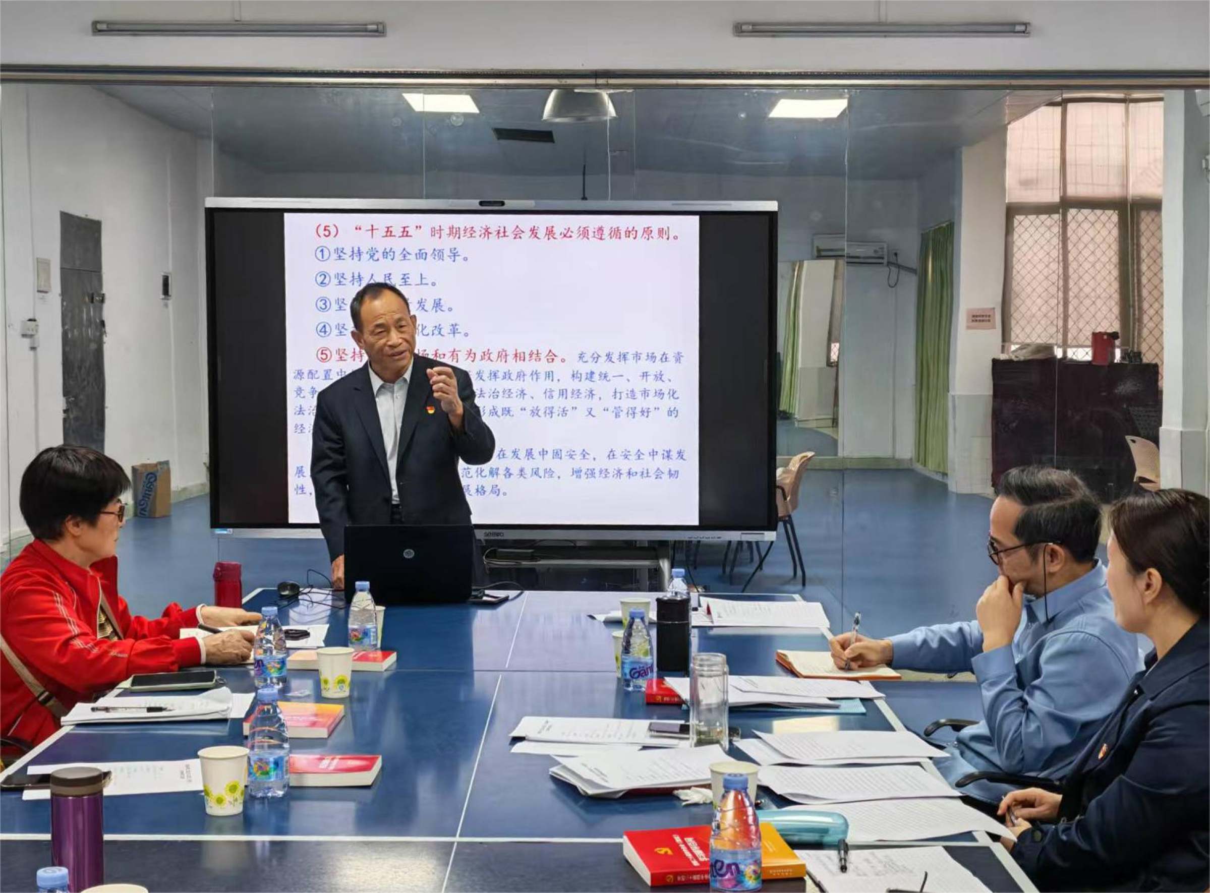 11月17日,离退休教工党总支理论学习中心组召开专题学习(扩大)会,深入学习党的二十届四中全会精神。离退休教工党总支理论学习中心组全体成员、离退休教工党支部书记参会,学校党建督导员林强到会指导。党总支书记徐莲香主持会议。