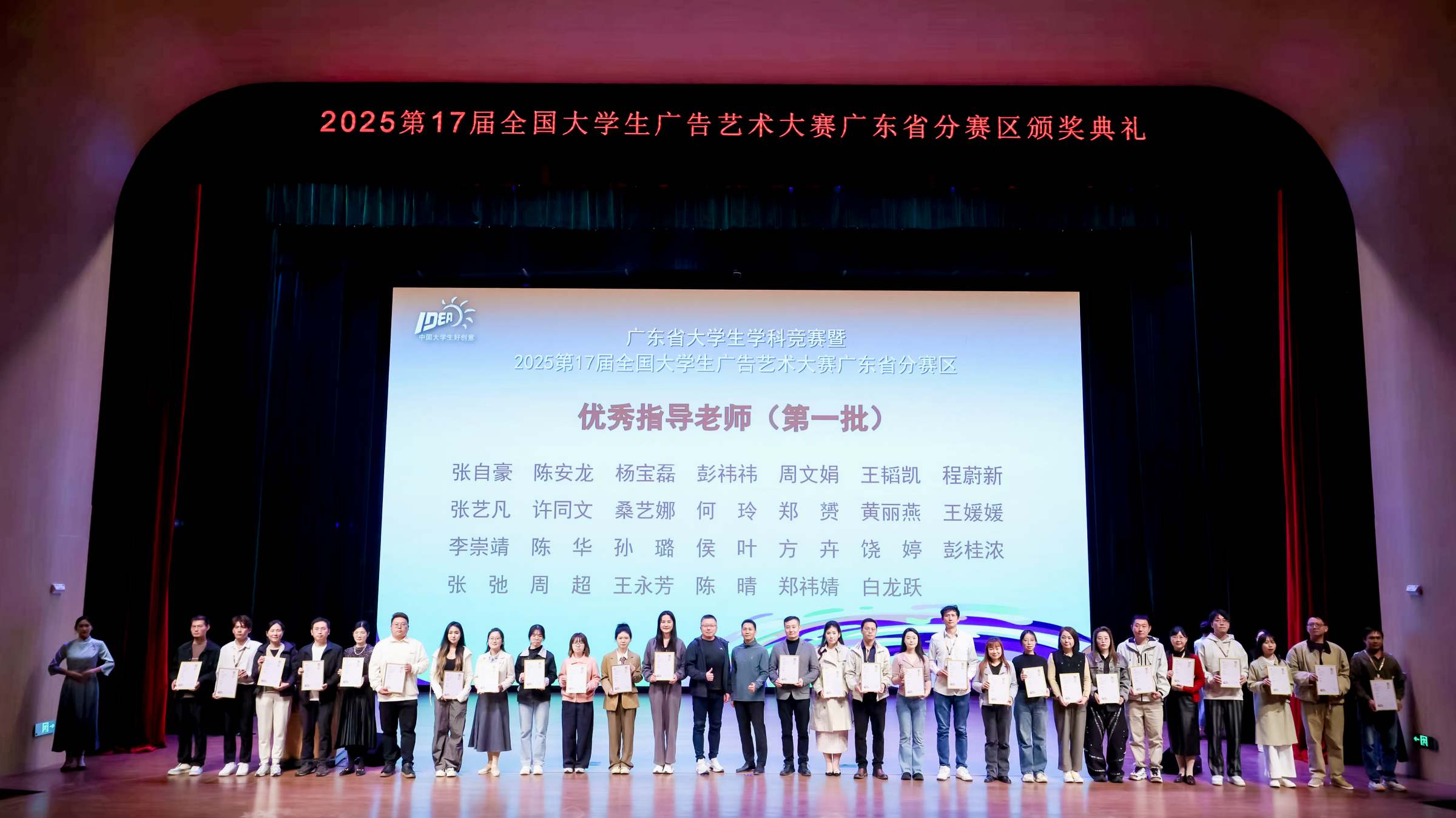 人文与传播学院(网络传播学院、出版学院)在本届比赛中获得省级奖项67项,国家级奖项13项,创造了我校历届比赛中的最好成绩。人文与传播学院(网络传播学院、出版学院)连续四年荣获“优秀组织奖”。谢启凡老师荣获“优秀组织工作者”称号,全省仅有31人获此殊荣。学院指导学生获得省赛一等奖的陈小晰、王楠、叔翼健、许哲、孙璐、李子、刘月圆等老师,获得由广东省教育厅颁发的2025年广东省大学生广告艺术节大赛“优秀指导教师奖”。