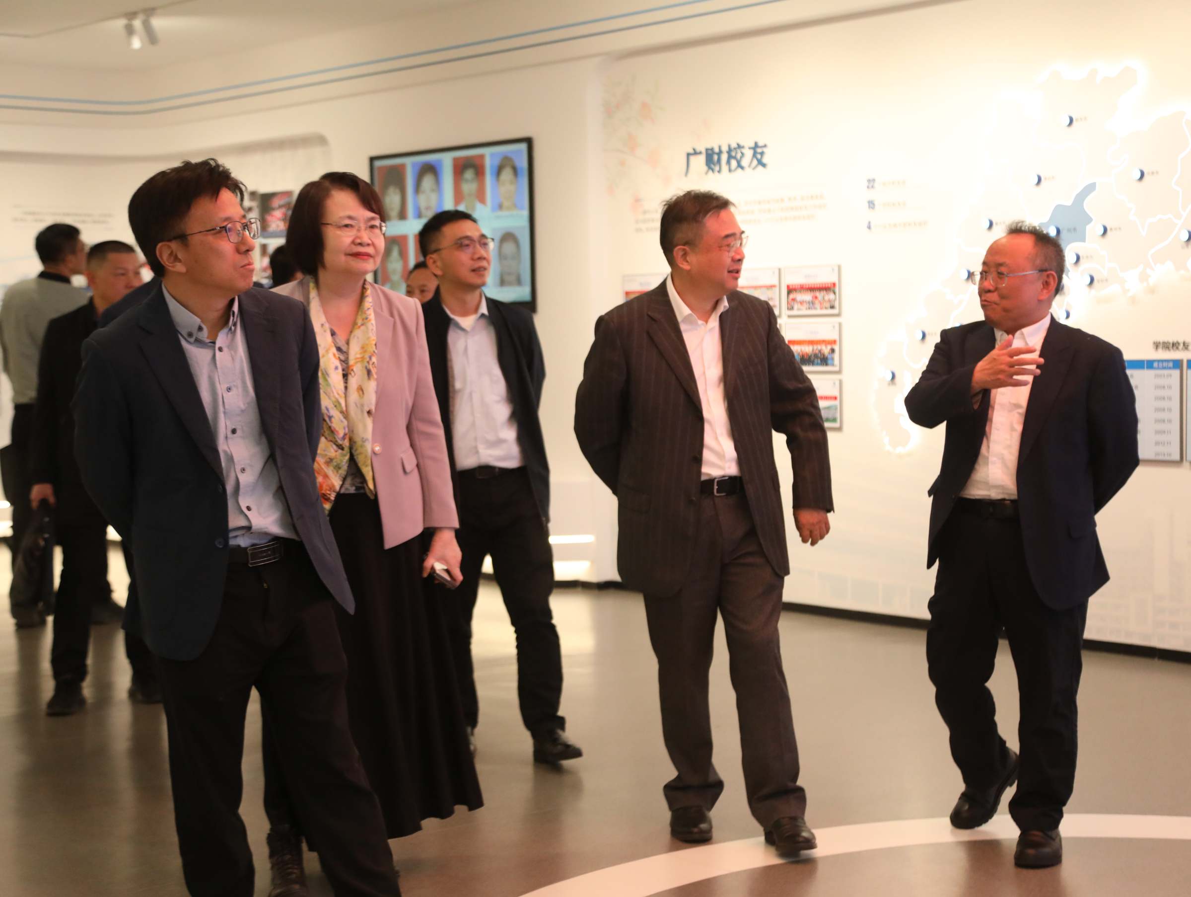 会前,郑贤操、于海峰、陈国栋陪同广东金融学院一行参观了校史馆。