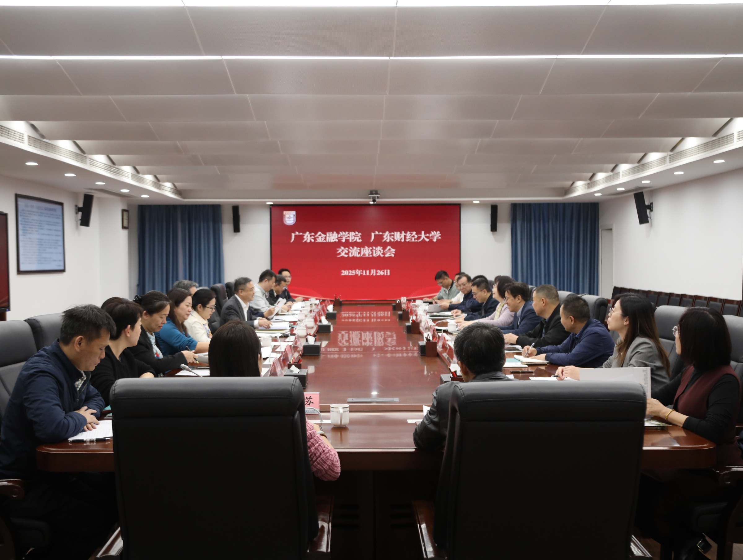 11月26日下午,广东金融学院党委书记李建军、校长易行健、副校长黄琼一行来校调研交流。校党委书记郑贤操主持交流座谈会,校长于海峰、副校长陈国栋出席座谈会。