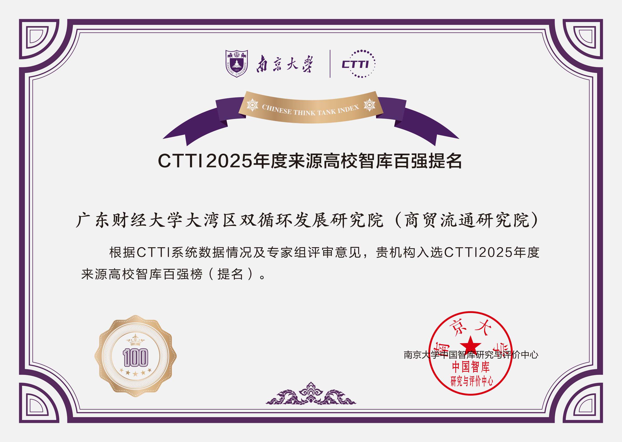 近日,我校发展与改革研究院(原大湾区双循环发展研究院)成功入选“CTTI2025年度来源高校智库百强榜(提名)”。