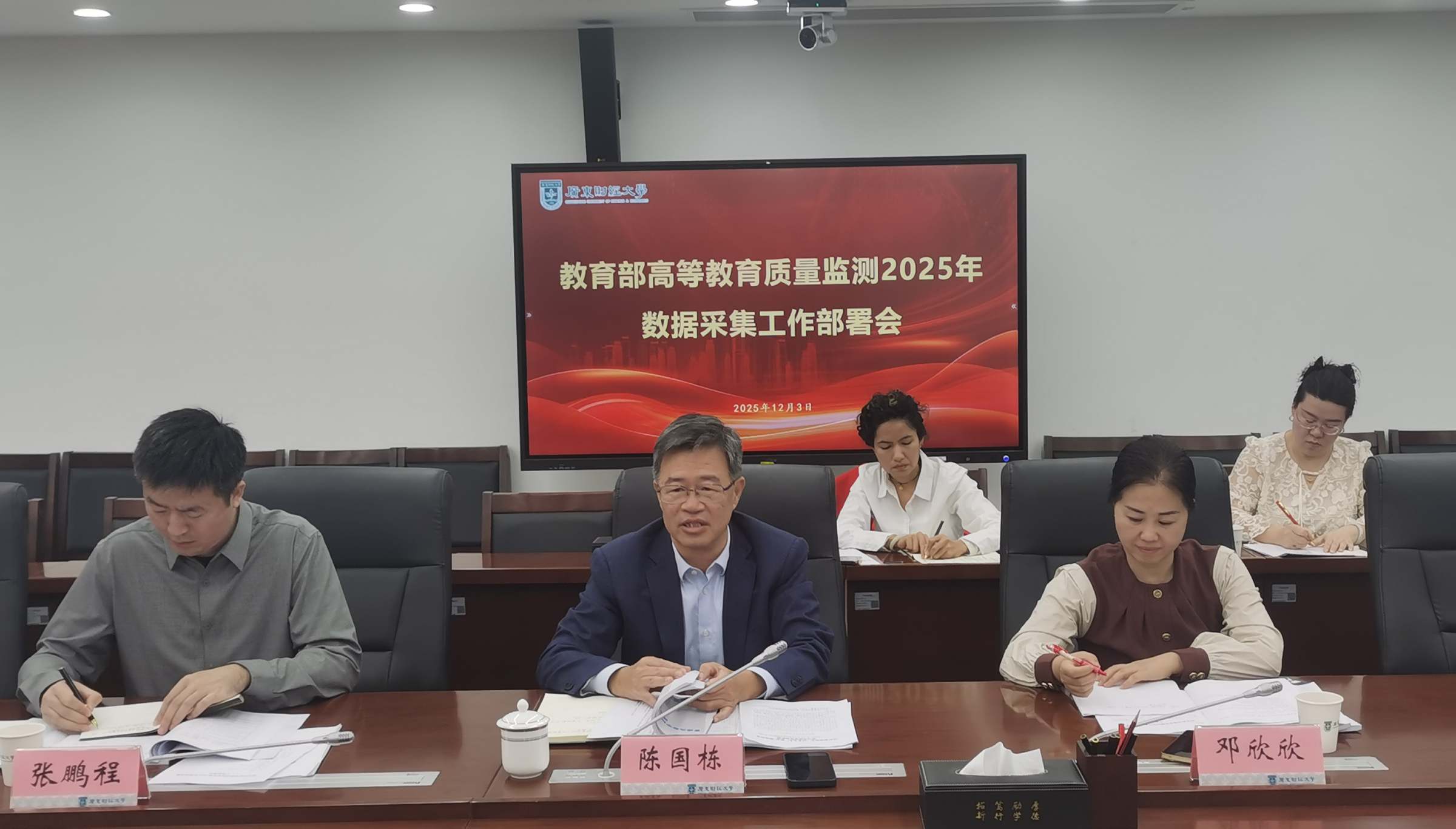 12月3日上午,2025年教育部高等教育质量监测数据采集工作部署会在同德楼第一会议室召开。副校长陈国栋出席会议并作动员讲话。
