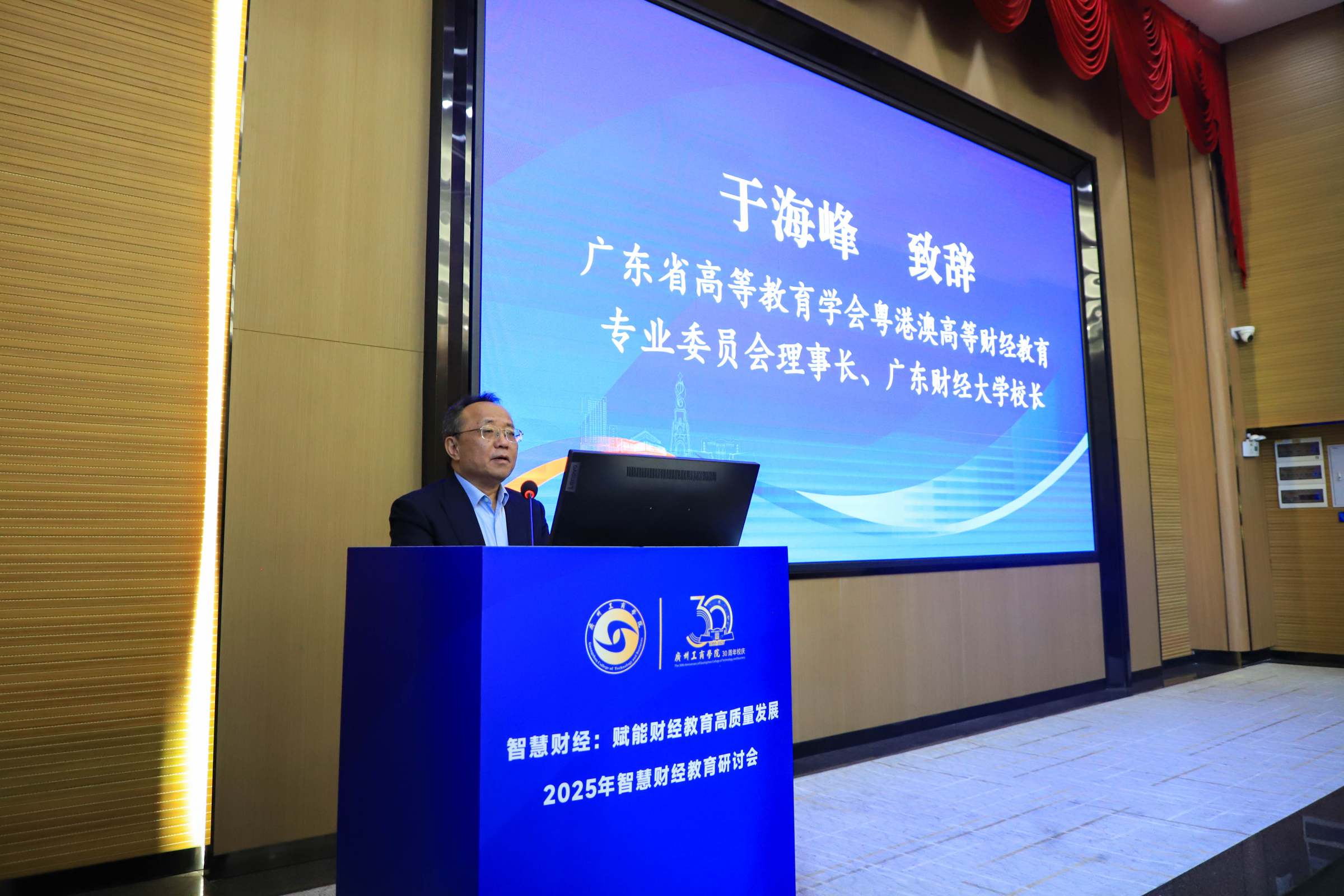 12月6日,由广东省高等教育学会粤港澳高等财经教育专业委员会主办的2025年智慧财经教育研讨会在广州工商学院花都校区举行。广东省高等教育学会粤港澳高等财经教育专业委员会理事长、我校校长于海峰出席会议。