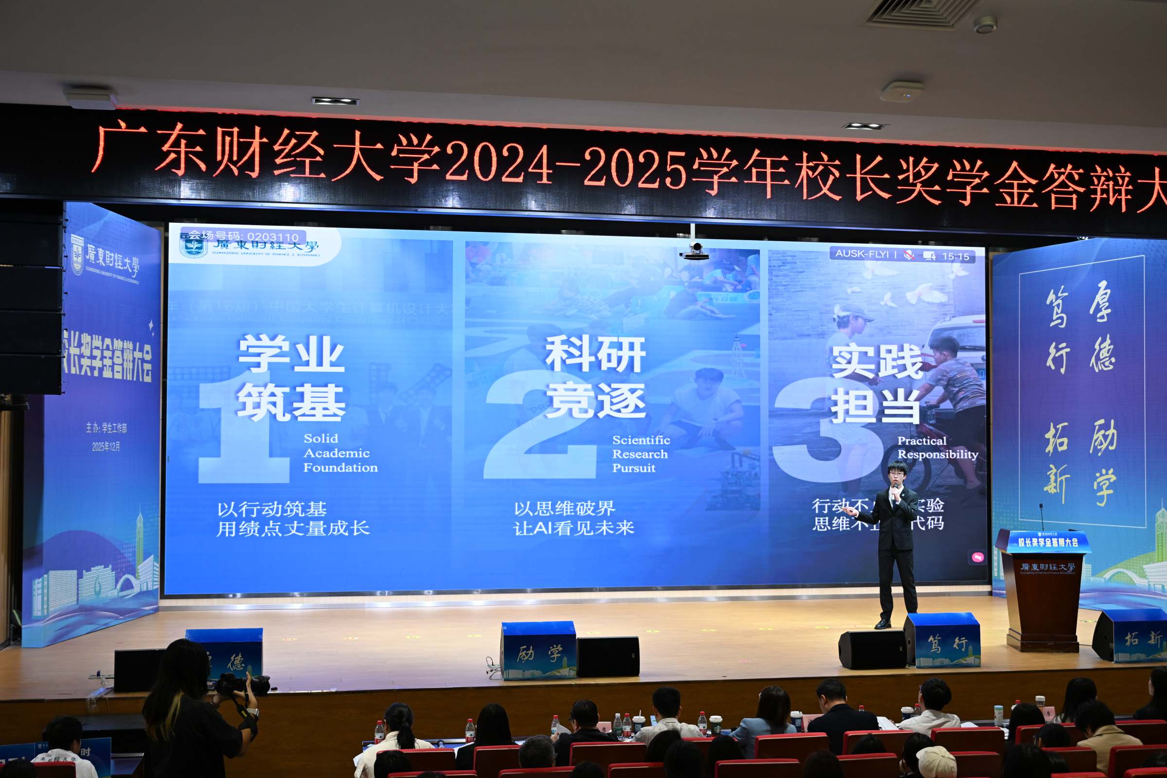 12月9日,我校在佛山校区同心楼111报告厅举行2024-2025学年校长奖学金答辩会。此次答辩会采用现场答辩、线上直播的方式,15位候选人同台竞技、各展所长,角逐本年度校长奖学金荣誉,吸引了全校师生的广泛关注。