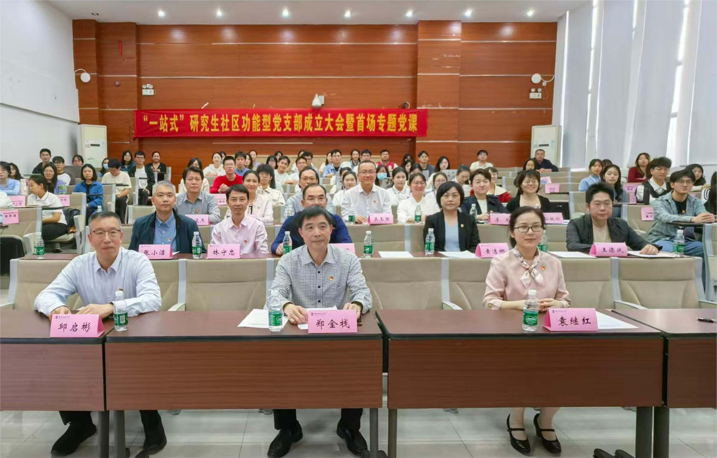 12月9日,我校“一站式”研究生社区功能型党支部成立大会暨首场专题党课在广州校区尚学楼110阶梯课室召开。校党委常委、组织部部长、机关党委书记郑金栈,机关党委专职副书记邱启彬,研究生工作部部长、研究生院院长袁继红,各研究生培养单位党委书记,组织部分管党建工作副部长及相关人员,研究生工作部分管研究生思政工作副部长及相关人员,全体研究生辅导员以及“一站式”研究生社区功能型党支部全体党员参会。袁继红主持会议。