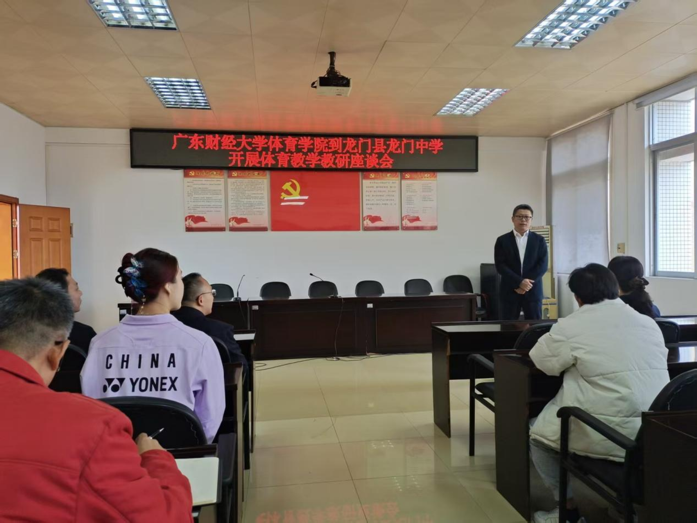12月10日,体育学院党委书记郑田、院长边宇带领师生团队赴惠州市龙门县龙门中学开展支教帮扶活动。活动通过体育教学教研座谈、专项技能培训等形式,助力龙门中学体育教育提质增效,守护青少年脊柱健康。省“双百行动”驻龙门县服务队队长桂拉旦,龙门县教育局党组成员、龙门中学党委书记林昱靖及龙门中学全体体育教师参与活动。