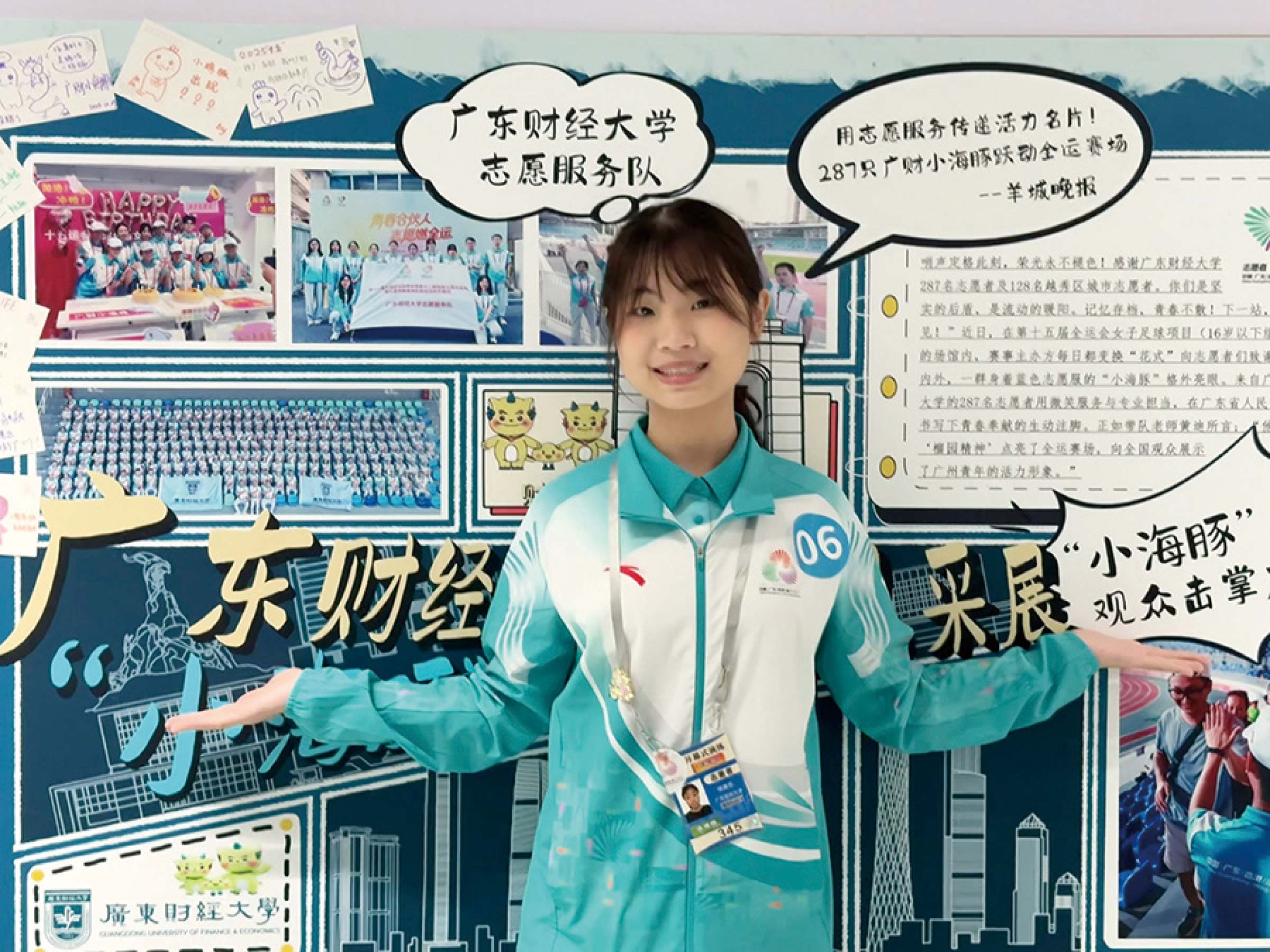 编者按:在十五运会这场体育盛会中,广州青年不仅是赛会的参与者,更是国家发展的见证者和推动者。他们如跃动的暖流般穿梭在竞赛场馆、城市角落,组成这座城市中最靓丽的风景线。来自各所高校的“小海豚”书写着自己的“全运日记”,让世界看到“青春合伙人”的蓬勃朝气。