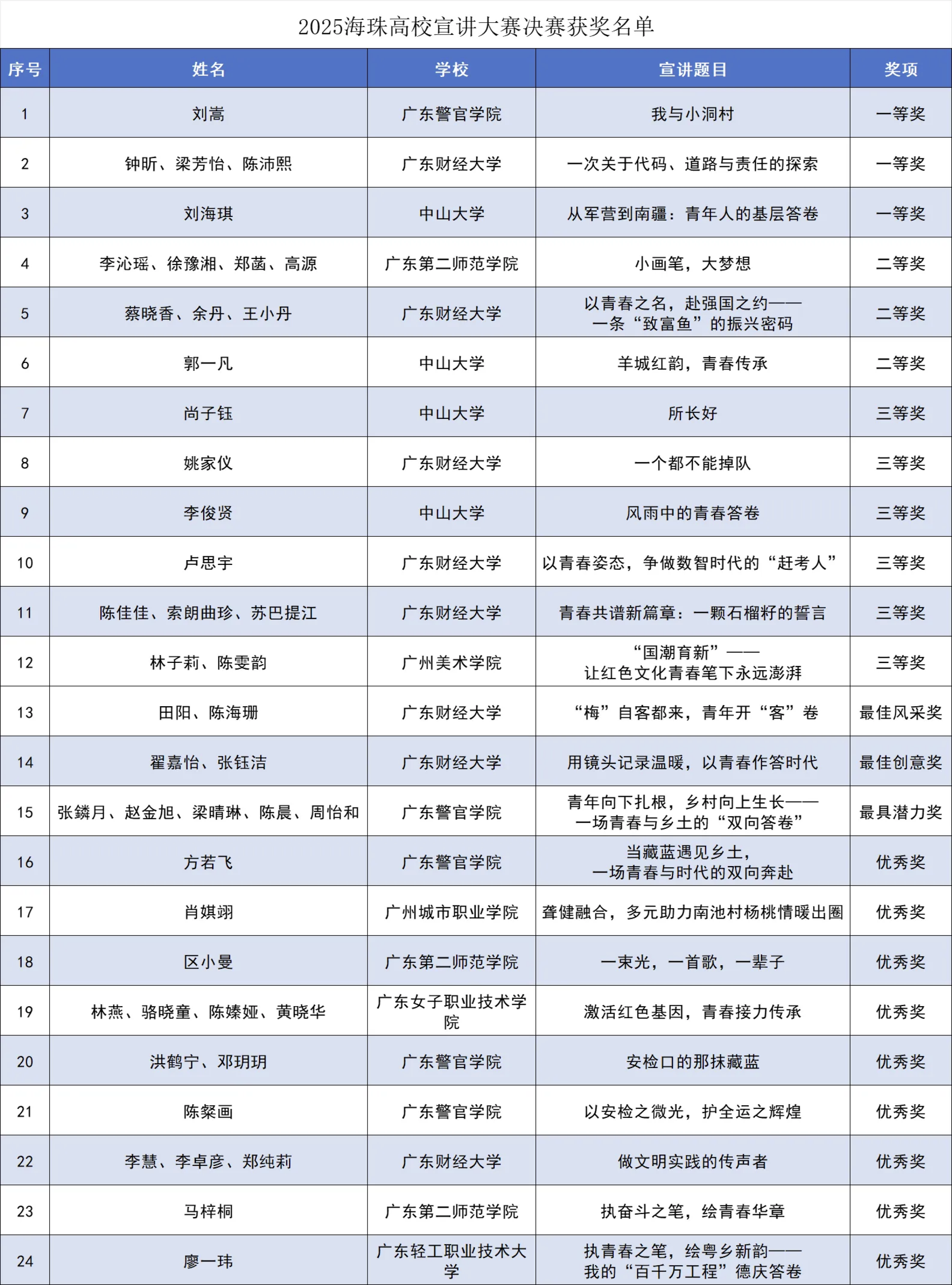 12月11日,由中共广州市海珠区委宣传部主办,广东财经大学、广东演讲学会协办的“青春逐梦新征程 时代新声谱新篇”2025海珠区高校宣讲大赛决赛在海珠区会议文化中心举办。