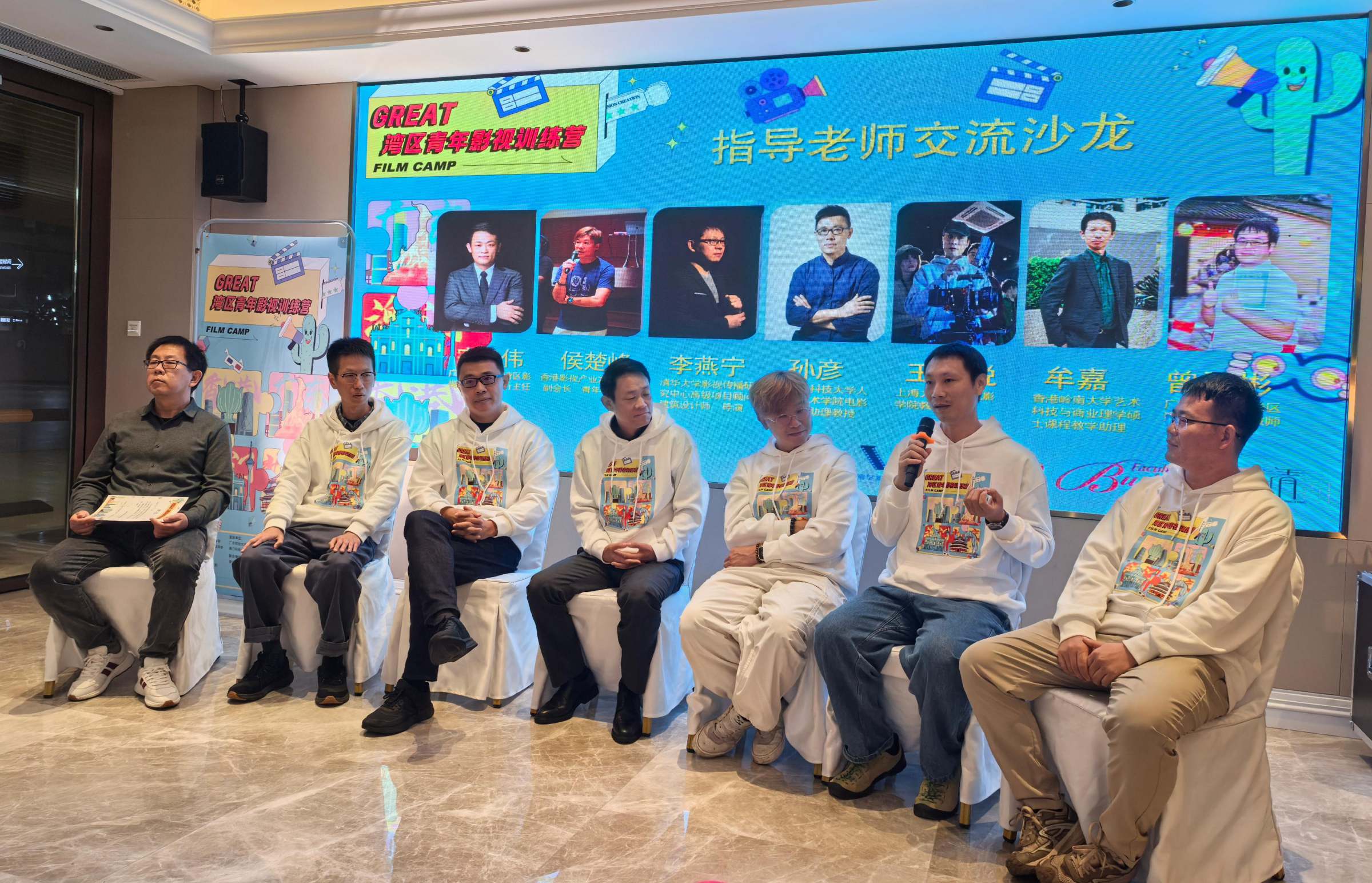 本次训练营引入香港影视产业发展促进会作为联合摄制单位,并邀请来自业界和学界的7位老师组成导师团队,全程进组指导创作。导师既有院线电影导演,如清华大学影视传播研究中心高级项目顾问、建筑设计师、导演李燕宁与香港青年导演侯楚峰,也有在主流媒体工作十余年的资深记者,还有高校影视学科的教授、博士。