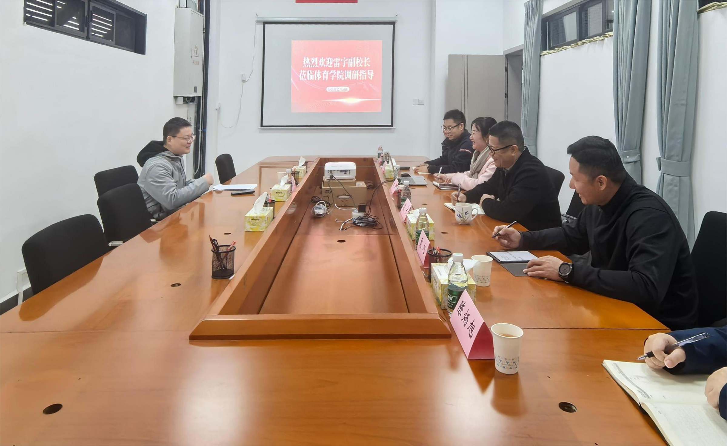 雷宇在听取汇报后,就关键问题与学院领导班子深入交流探讨,对体育学院的工作思路和务实举措表示认可。他强调,体育是“五育并举”育人体系的重要组成部分,对培养德智体美劳全面发展的高素质人才具有不可替代的作用,学校高度重视体育学科建设与体育工作开展。