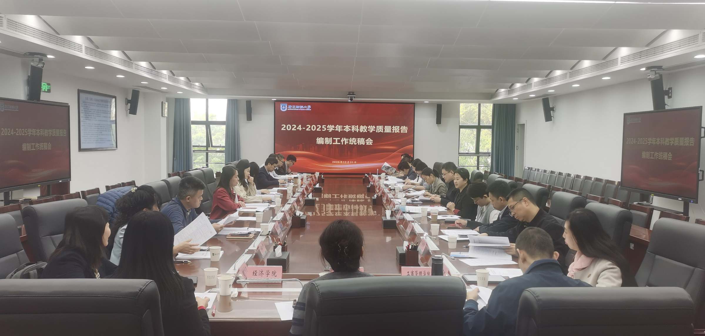 2025年12月31日上午,学校在广州校区同德楼第一会议室召开2024-2025学年本科教学质量报告编制工作统稿会。副校长雷宇出席并主持会议。教学质量监控与评估中心、党政办公室、组织部、宣传统战部、学生工作部、人力资源部等17个职能部门和马克思主义学院、工商管理学院、法学院、经济学院、会计学院等8个教学单位的相关负责人参加会议。