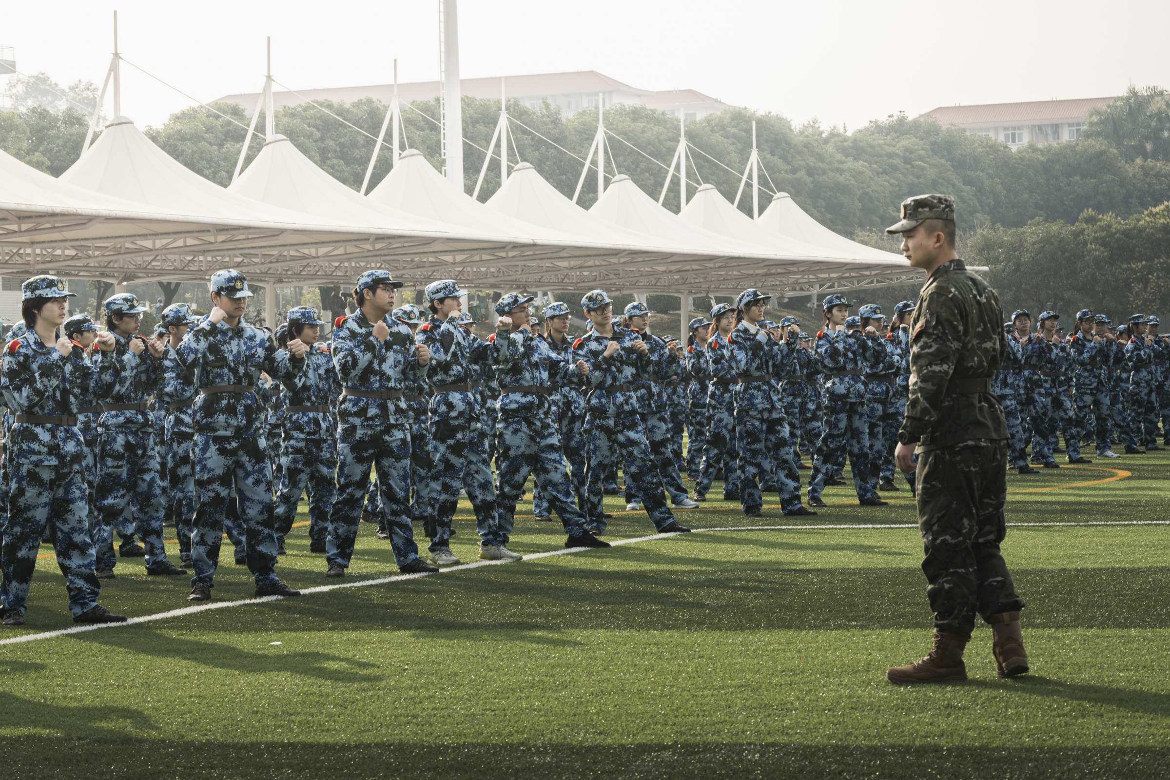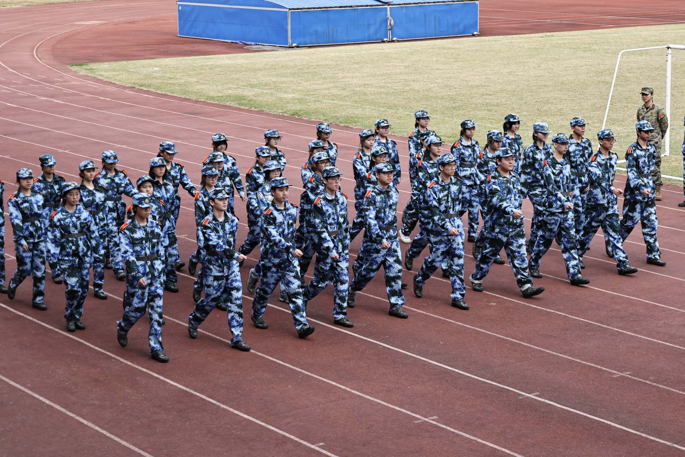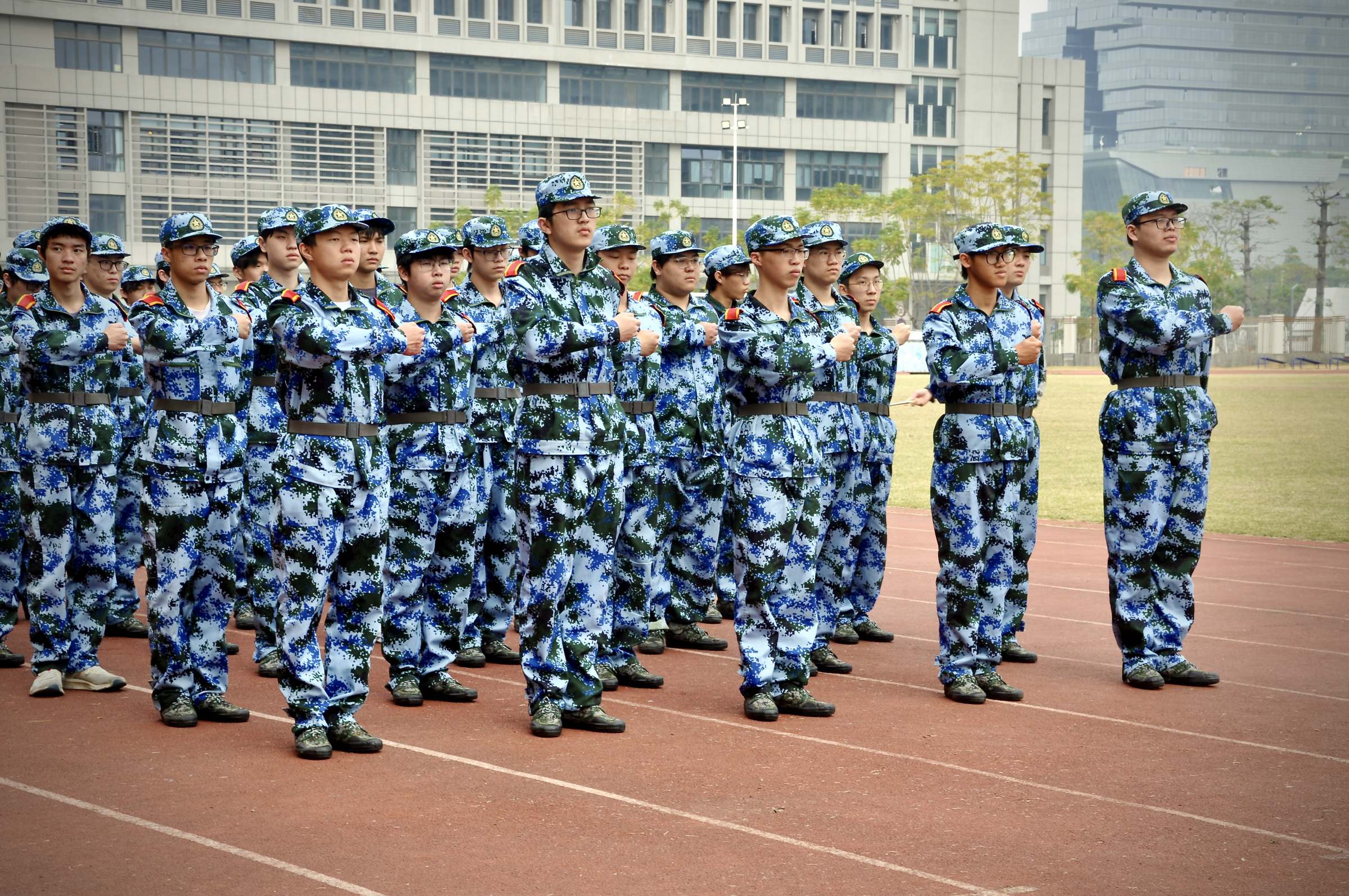 根据学校军训工作安排,2025级学生军训团共编成4个营,18个连,在14天时间里,开展军事技能训练、队列训练、分列式训练、模拟射击训练和综合技能训练等项目训练。