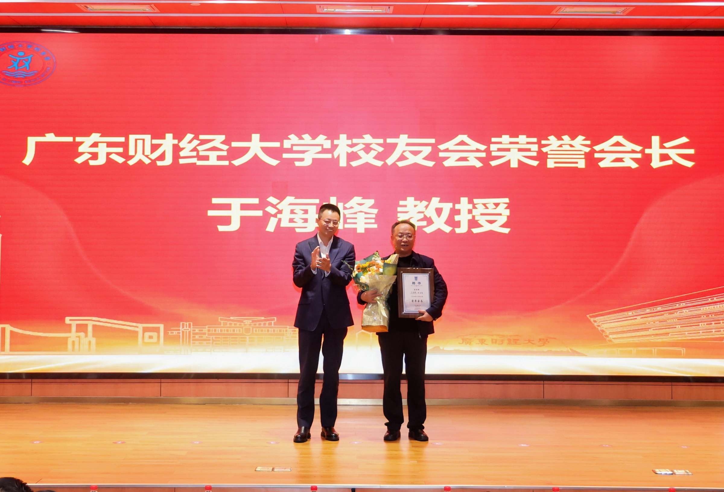 除校外企业捐赠之外,不久前退休的邹新月教授向金融学院“金石励学基金”捐赠20万元,支持学校建设和发展。同时,为感谢于海峰教授为学校发展作出的卓越贡献,会议特聘其担任广东财经大学校友总会荣誉会长。童士清为其颁发聘书。