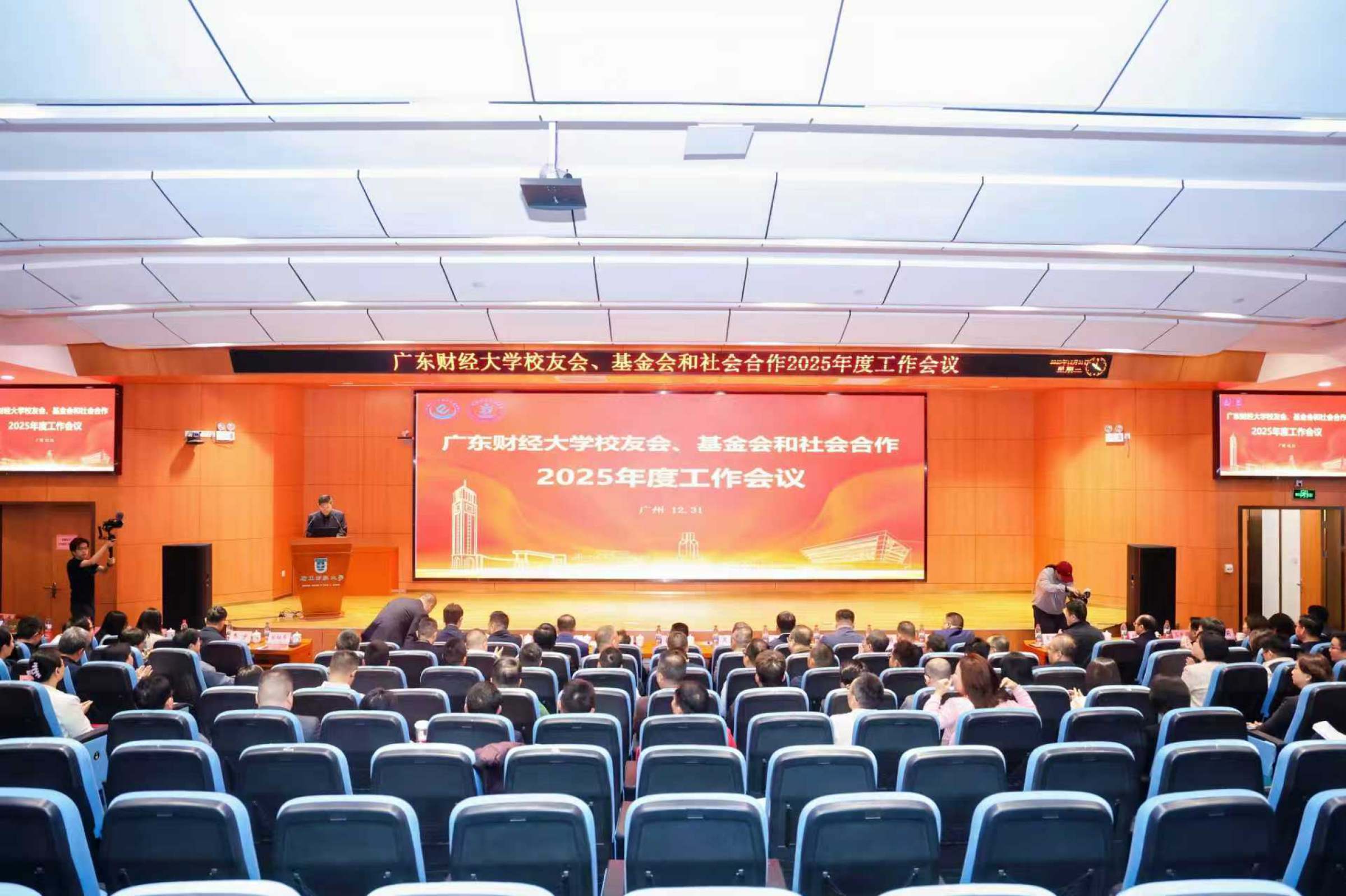 2025年12月31日,广东财经大学校友会、基金会和社会合作2025年度工作会议在广州校区正心堂召开。会议以“同心擘画‘十五五’,共绘广财新篇章”为主题,校领导、校友工作领导小组成员、校友会和基金会理事、捐赠企业代表、2025年度校友导师、学校相关职能部门负责人及各学院校友工作联络人,共同回顾2025年工作成效,展望“十五五”期间校友与母校协同发展新蓝图。校长童士清出席会议并讲话,校党委副书记刘祖华主持会议。