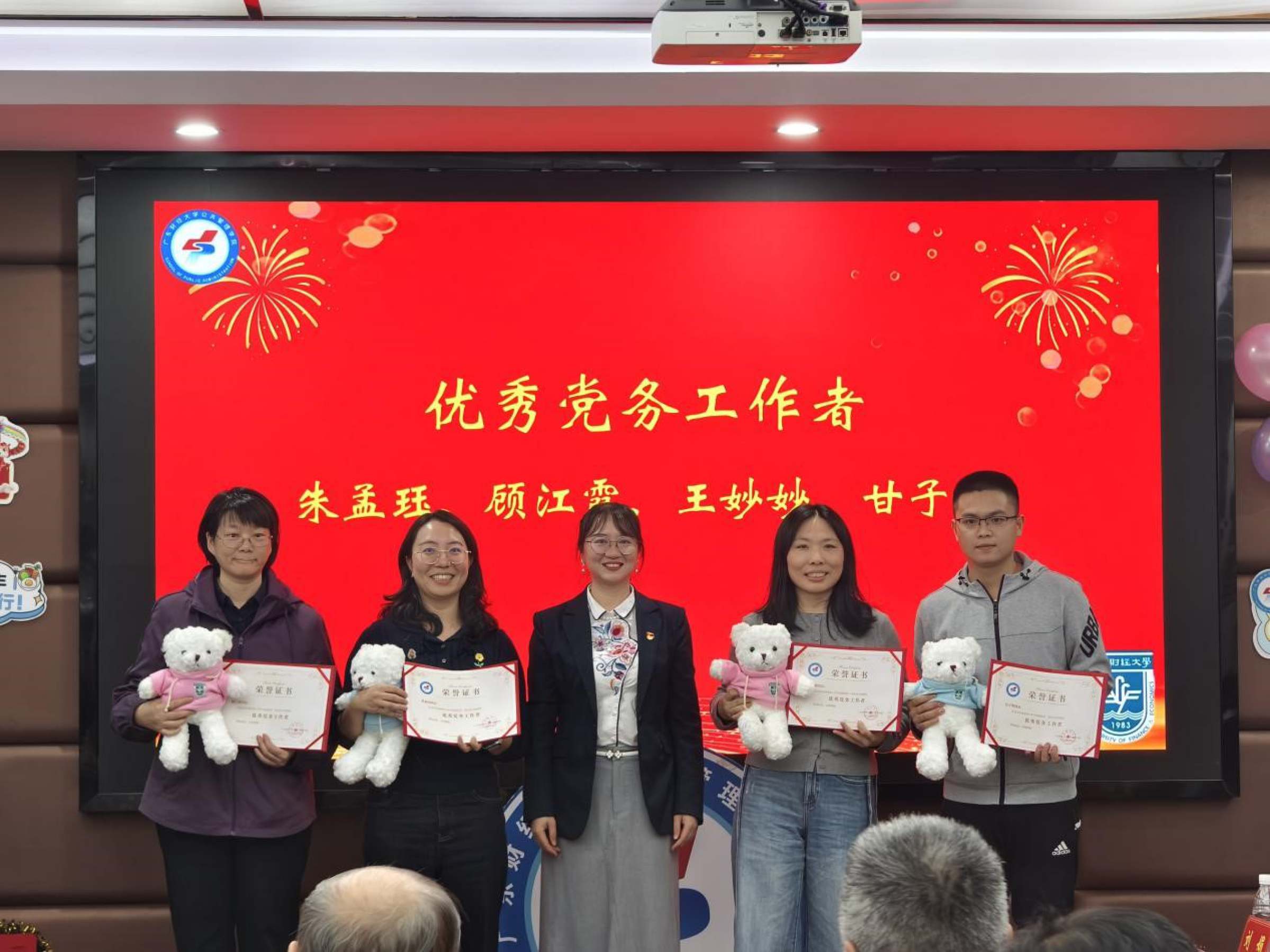 在“公管之星”表彰环节,公共管理学院为优秀党务工作者、优秀共产党员、优秀教学工作者、优秀行政管理工作者、优秀科研工作者、工会积极分子、优秀指导老师、优秀研究生教育工作者、优秀院外MPA指导老师、优秀辅导员、优秀班主任获奖者颁发证书。