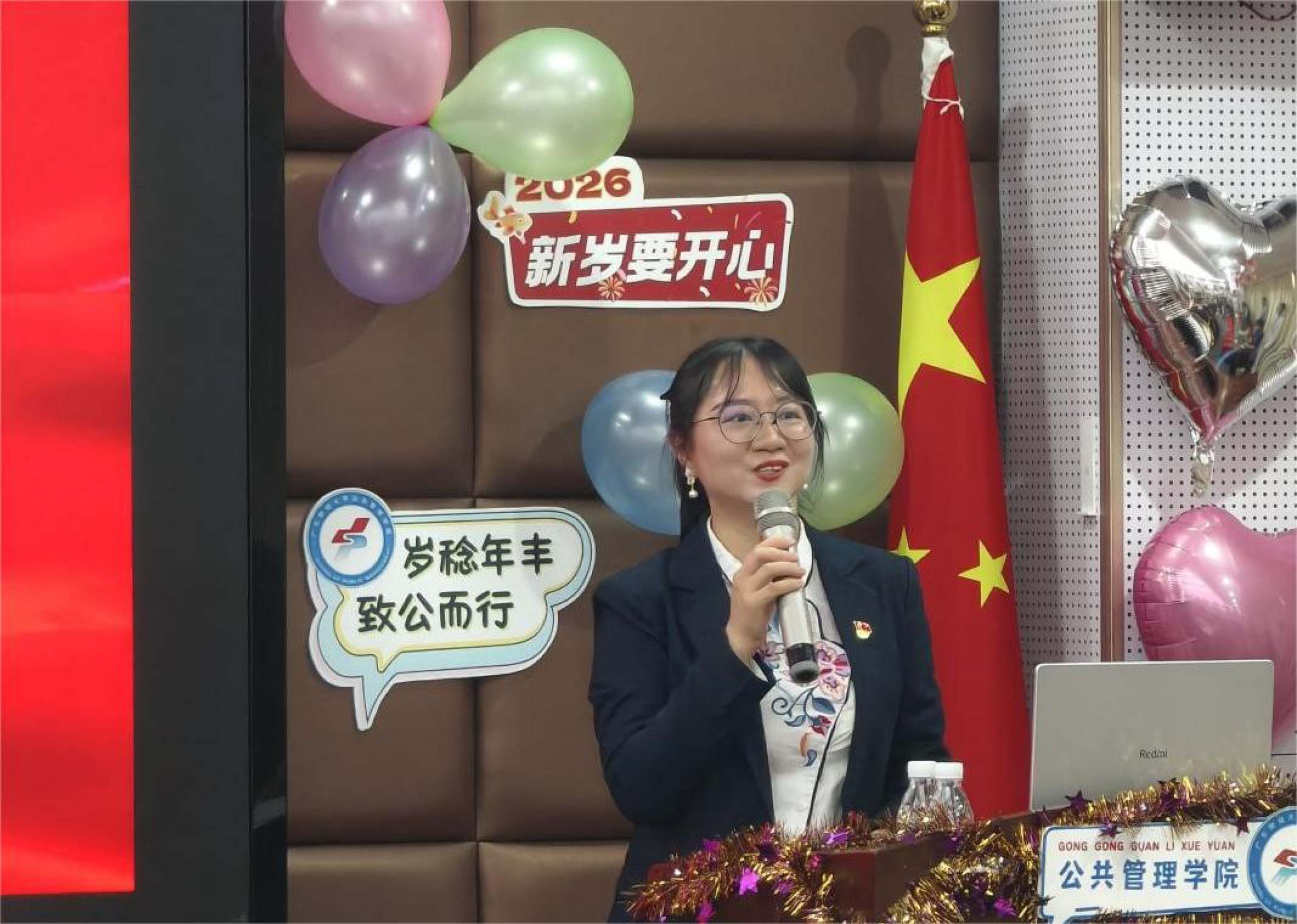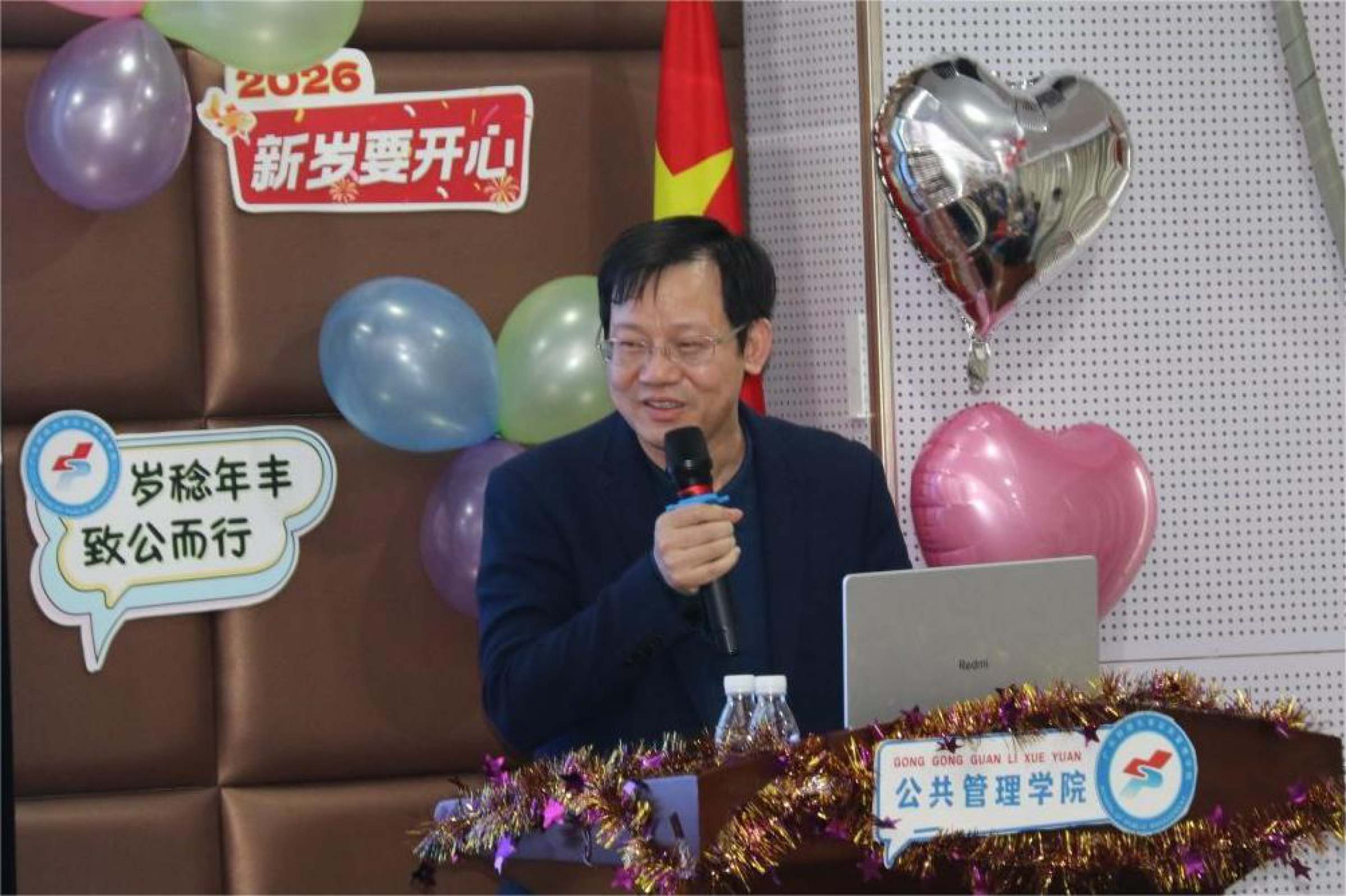 近日,公共管理学院“岁稔年丰·致公而行:共谋公管新篇章”2025年度工作总结暨表彰大会在立德楼642室举行。学校招生考试部部长李伟军、审计部部长罗玉燕、校工会常务副主席陈红丽、图书馆馆长王忠政,公共管理学院全体教职工、退休教师代表、校友代表与学生代表参加活动。