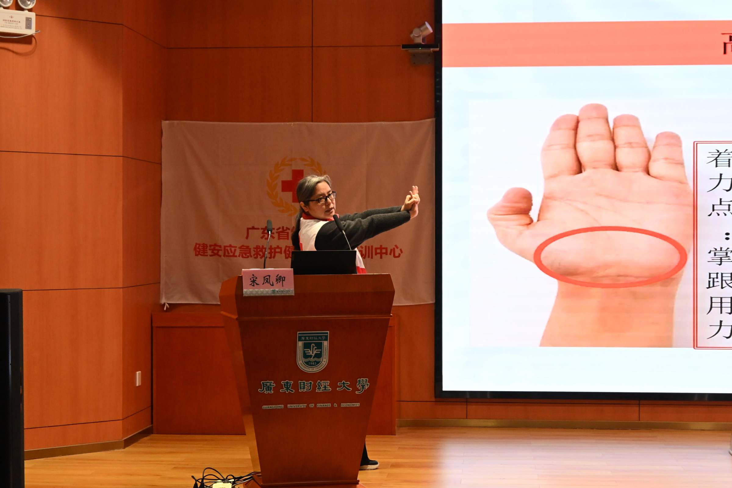 1月7日上午,学工部联合校团委、门诊部和广东省红十字会在正心堂举办校园应急救护科普宣教活动。活动邀请中山大学孙逸仙纪念医院急诊科副主任宋凤卿主讲。省红十字会应急救护健康科普培训中心主任宋依依、副主任肖靖琨、钟云莺,学生工作部副部长吴宏豪、校团委副书记薛云峰、门诊部副主任李超威,辅导员代表以及广州校区全体2025级新生参加活动。