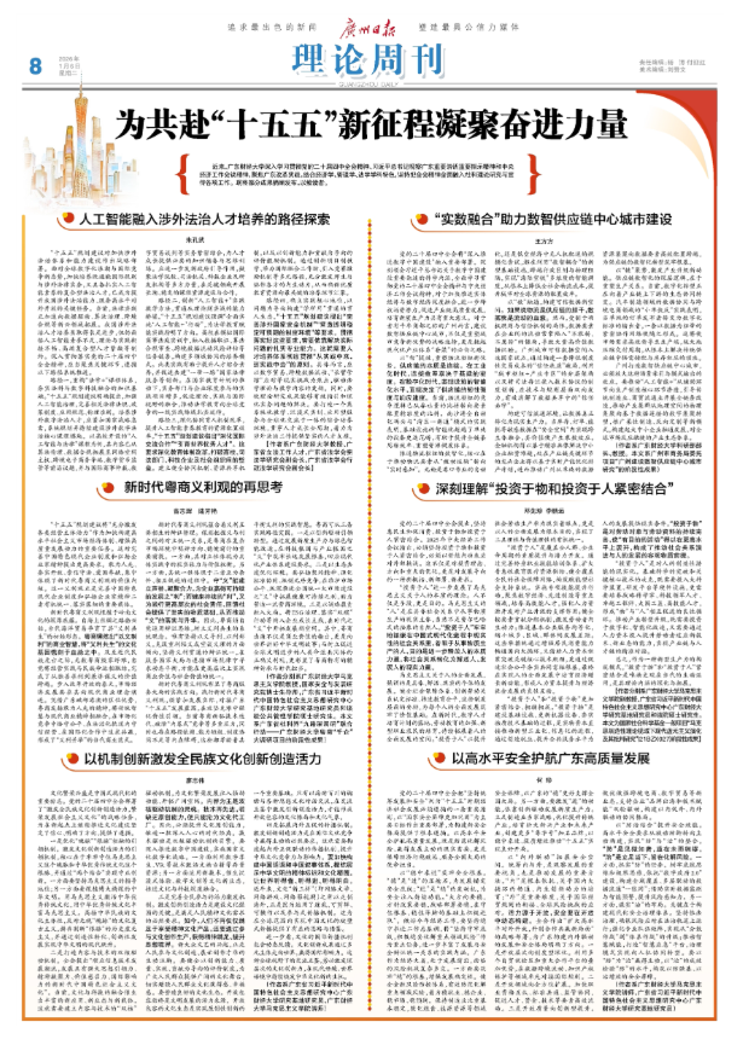 1月6日,广州日报理论周刊整版刊发我校六位学者的理论阐释文章,聚焦"十五五"规划与广东高质量发展,并被“学习强国·广东平台”全文转载推送。