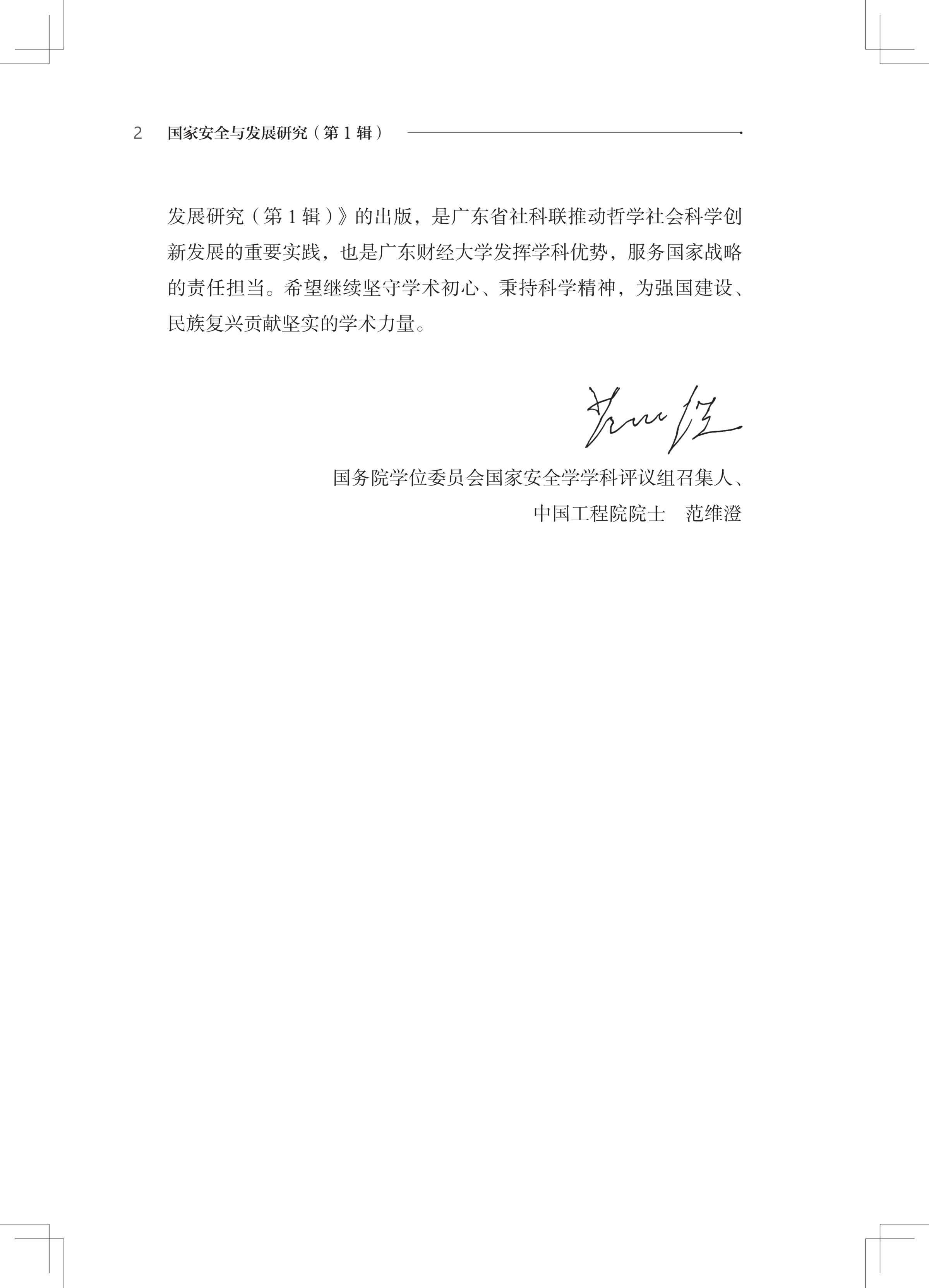 《国家安全与发展研究(第1辑)》的出版,是广东省社科联推动哲学社会科学创新发展的重要实践,也是我校发挥学科优势、服务国家战略的责任担当。国务院学位委员会国家安全学学科评议组召集人、中国工程院院士范维澄为《国家安全与发展研究(第1辑)》撰写卷首语。