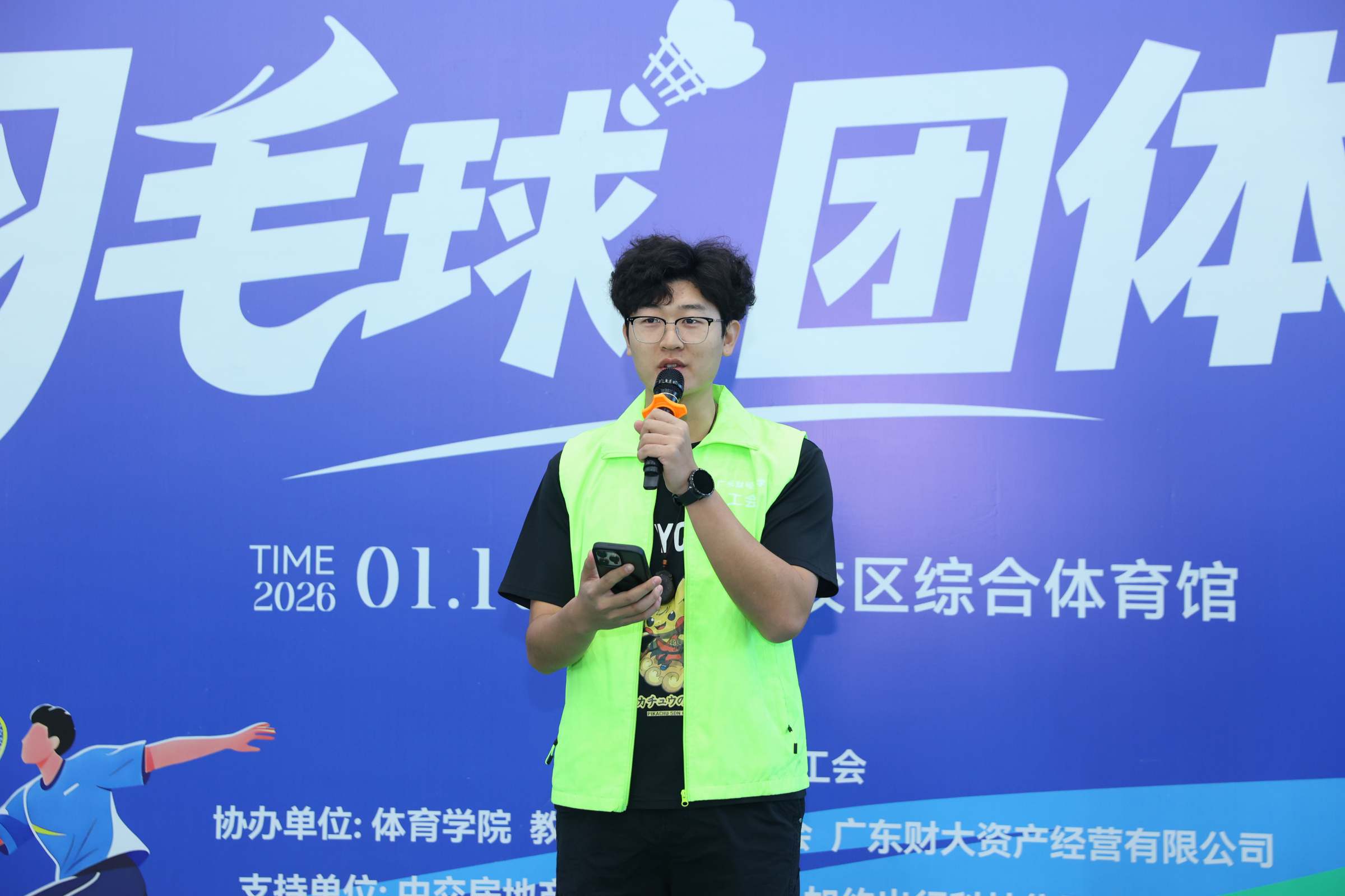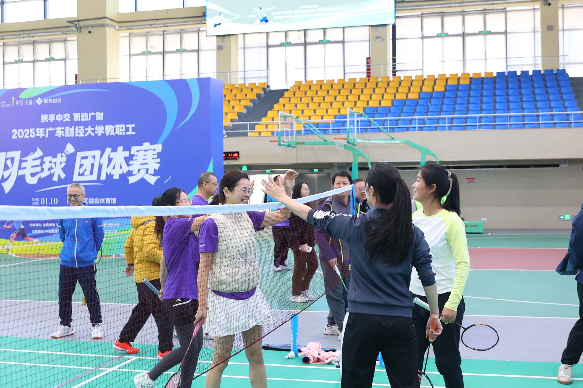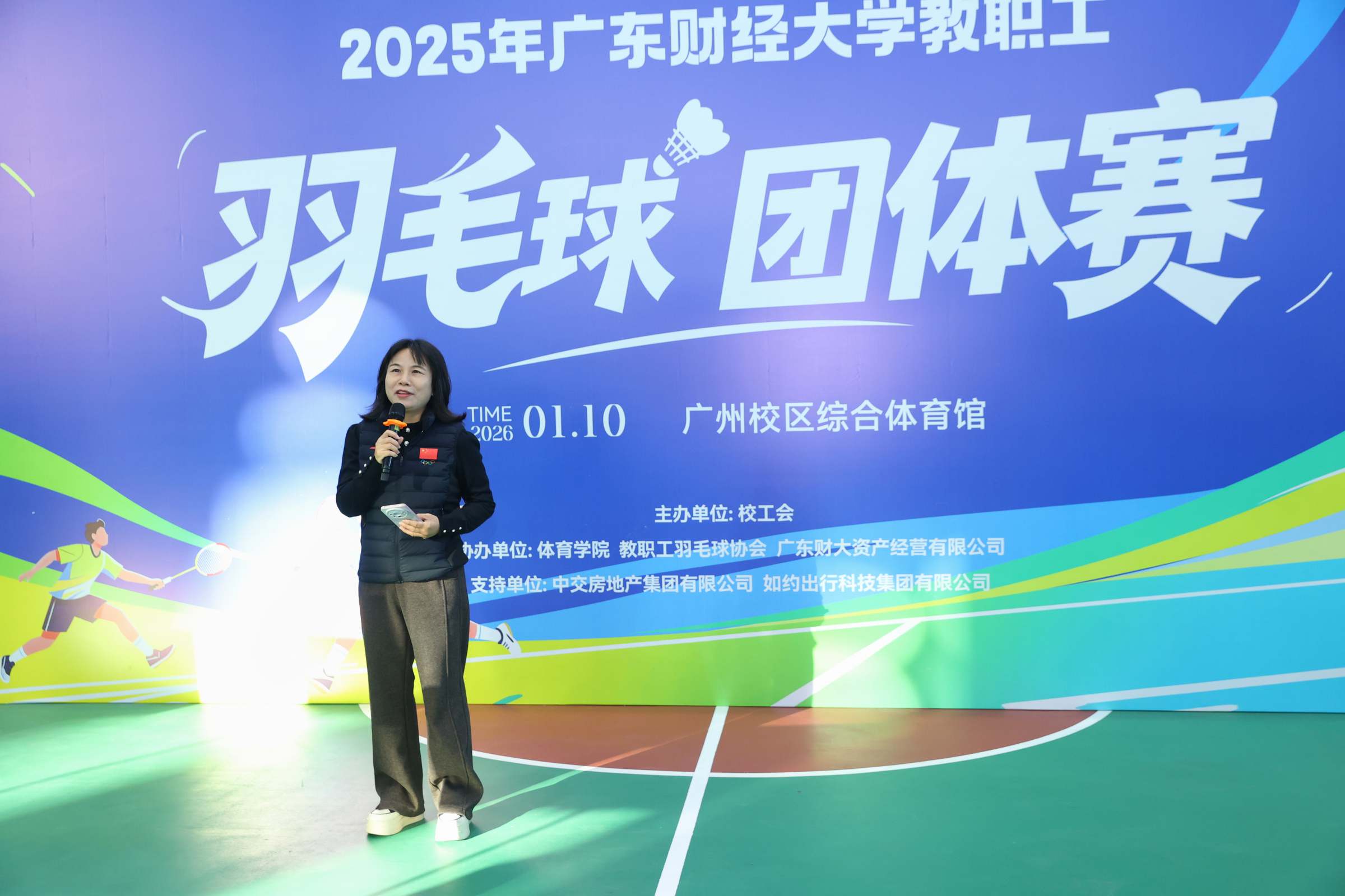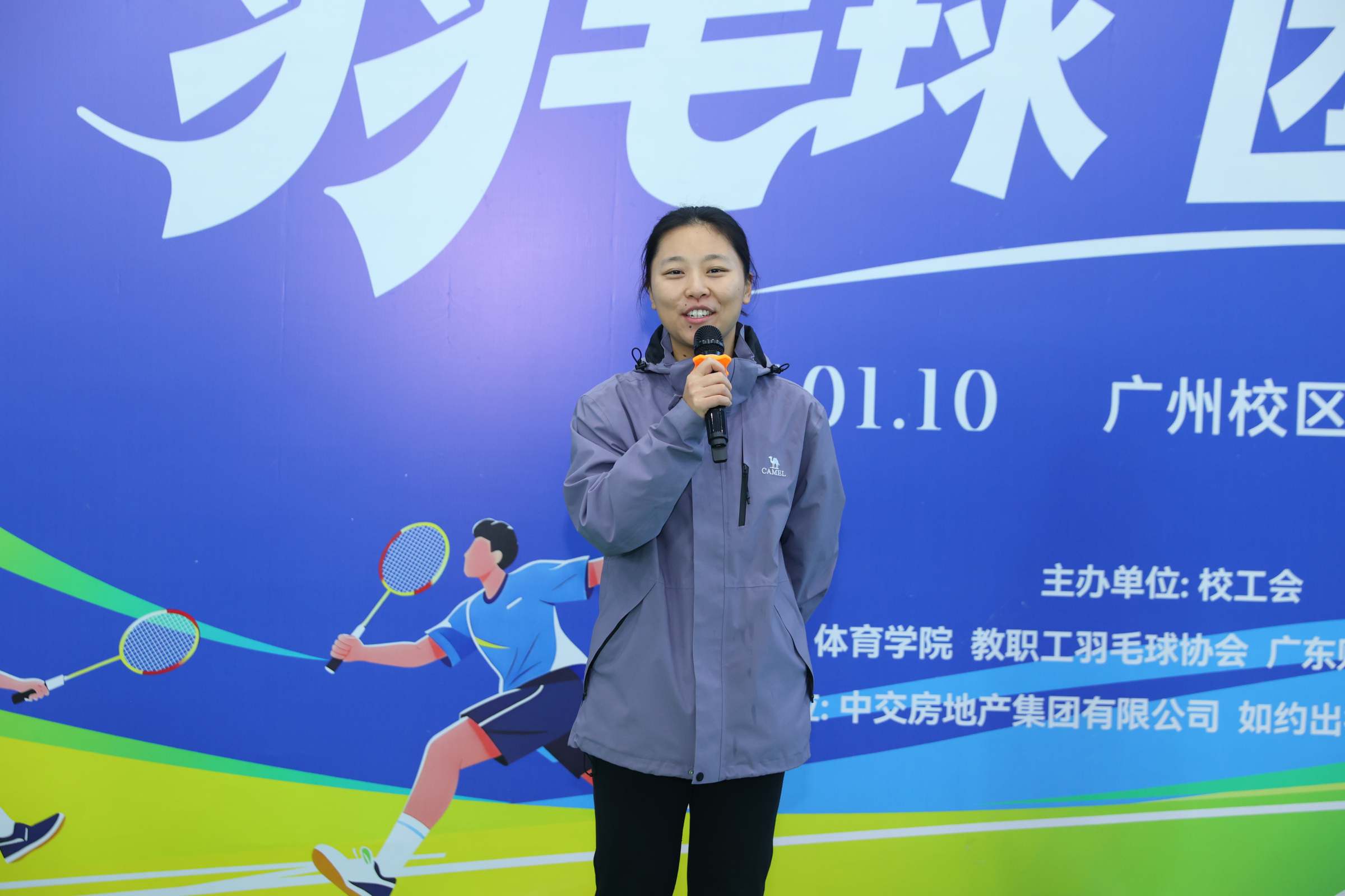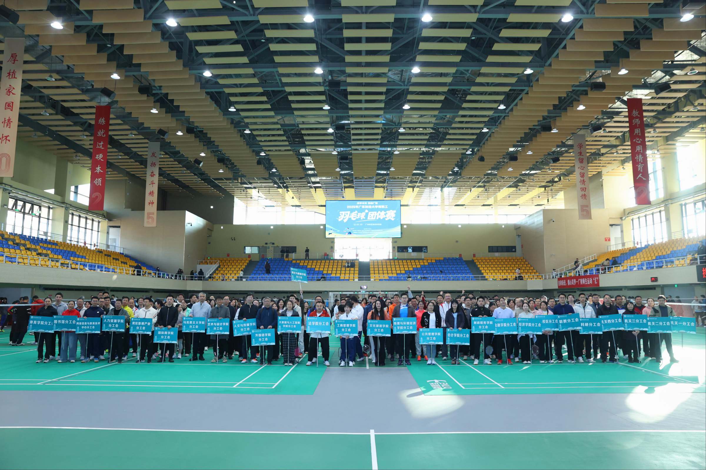 1月10日,2025年教职工羽毛球团体赛举办。这是首次在广州校区体育馆举办该赛事,比赛吸引全校28个分工会的585名羽毛球爱好者报名参赛。校党委副书记、工会主席刘祖华出席开幕式并致辞,校工会常务副主席陈红丽主持开幕式。