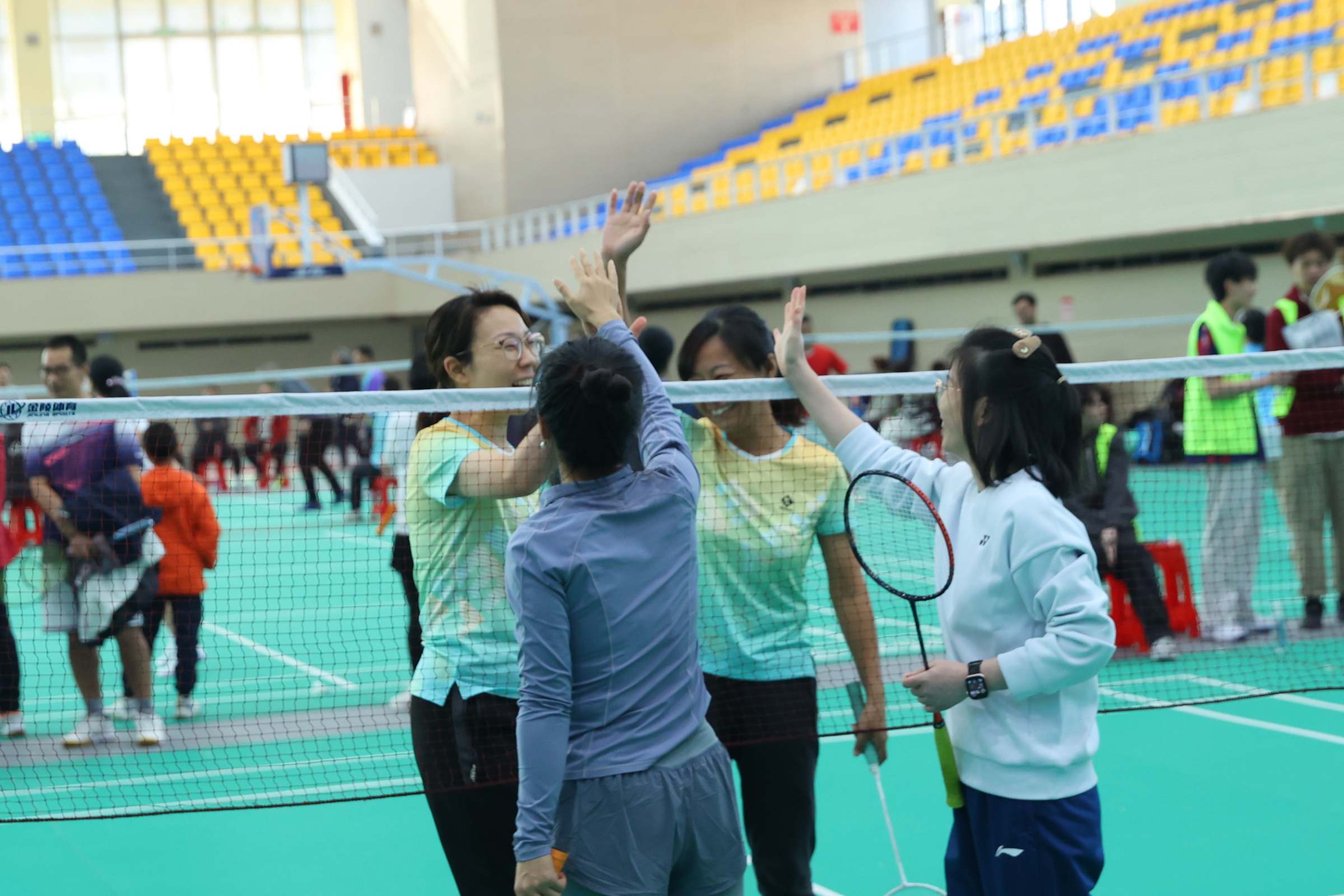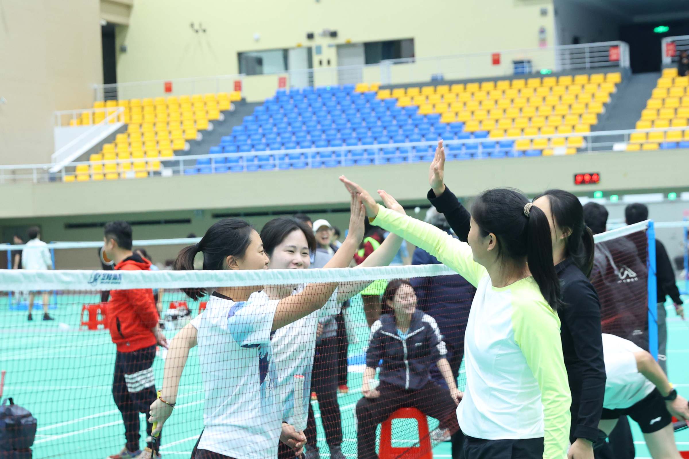 运动员们步伐灵活、扣杀精准,展现了精湛的球技和良好的体能。队友间默契配合、相互鼓励,充分体现了团结拼搏的协作精神。裁判员们恪尽职守,公正执裁,保障了比赛的顺利进行。赛场边,啦啦队的加油声、喝彩声此起彼伏,热烈的氛围感染着每一个人。