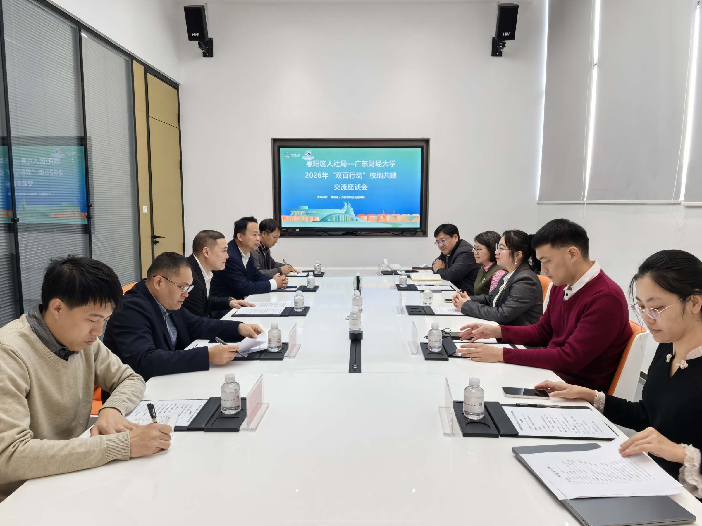 13日上午,学院团队赴惠阳区人力资源和社会保障局开展“双百行动”校地共建活动,区人社局副局长邓测宇、机关党委副书记曾雪浩、人才交流服务中心主任黄志兴、“双百行动”驻惠阳区服务队队长周瑾等参加交流。会上,双方重点围绕高校毕业生就业创业服务、实习实践基地共建、人才政策优化与职业技能提升等议题展开交流。