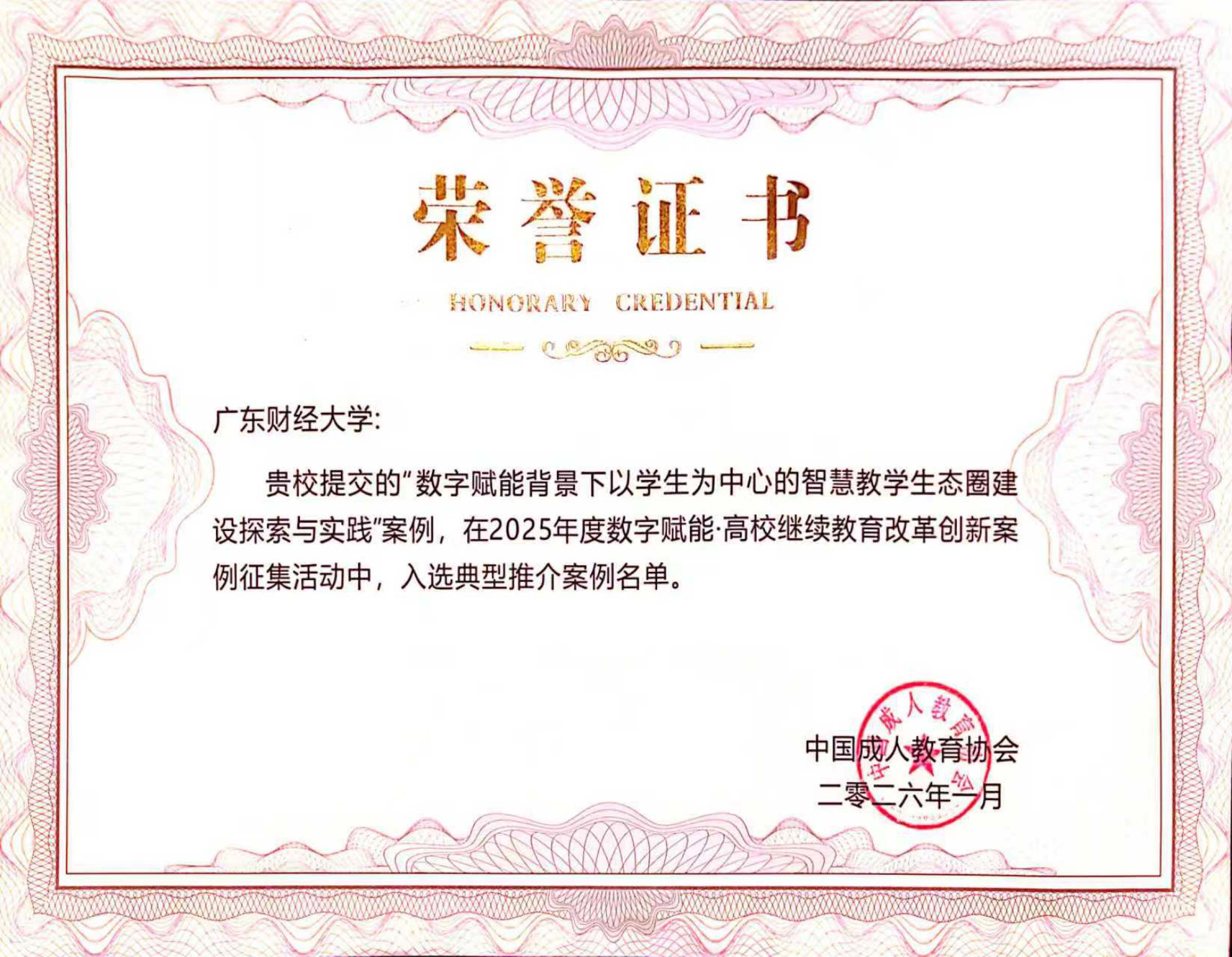会议期间,还举行了2025年度高校继续教育改革创新案例现场颁奖与集中推介仪式。我校报送的《数字赋能背景下以学生为中心的智慧教学生态圈建设探索与实践》案例,入选“典型推介案例”名单,并在会上获颁荣誉证书。该成果体现了我校在数智赋能继续教育教学模式创新、学习生态构建及高质量发展方面取得的阶段性成效,提升了学校继续教育和全民数字教育的品牌影响力。