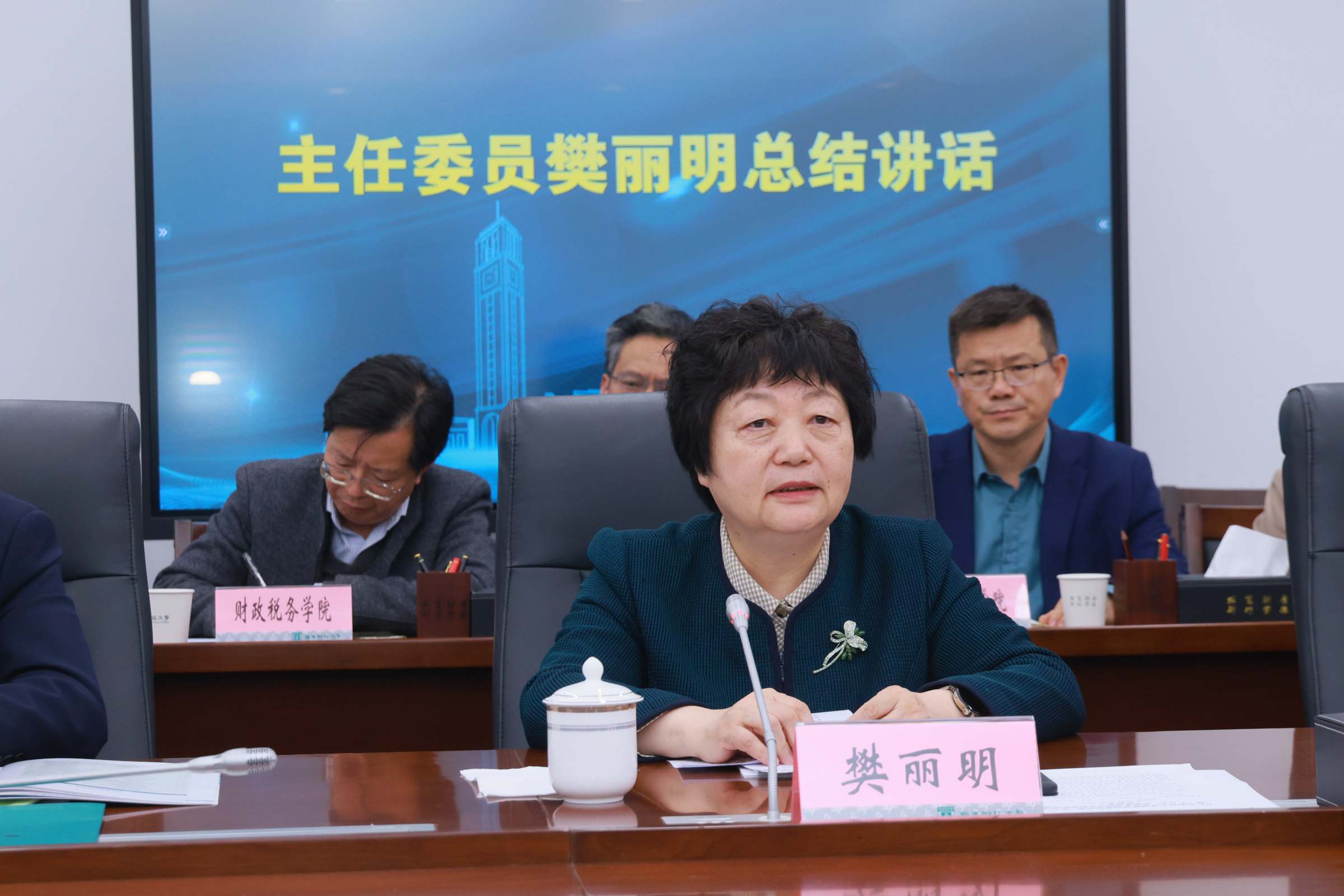 樊丽明主任委员作总结讲话,高度肯定学校“十四五”期间在学科建设、人才培养、科研创新等方面的跨越式发展,认为办学实力与社会影响力显著提升;并指出各位委员的发言立足国家战略、紧扣区域需求、贴合学校实际,意见建议兼具战略高度与实践可操作性,为“十五五”规划完善提供了重要遵循。她强调,“十五五”期间,学校需锚定国家战略与大湾区建设需求,明确发展定位与路径,突出特色重点,从五个方面精准发力。一是坚守政治底色、深耕特色立校,把牢社会主义办学方向,紧扣数字经济前沿与自身定位,以立德树人为根本,培养全面发展的时代新人,构筑核心竞争力;二是锚定战略目标、聚焦重点突破,以学科建设为龙头、人才培养为中心、科研创新为抓手,优化学科梯队布局,集中资源打造学科高峰;三是坚持人才强校、拓展开放格局,完善领军人才引育机制与聘用体系,建设“双师型”教师团队,深化校政行企协同与国际合作,拓展发展空间;四是激活内生动力、深化治理创新,构建权责清晰、协同高效的“动车组”式发展格局;五是强化文化铸魂、夯实师资保障,厚植教育家与科学家精神,引领财经教育科研高质量发展。她表示,战略咨询委员会将持续关心支持学校发展,为学校高质量发展建言献策、保驾护航。