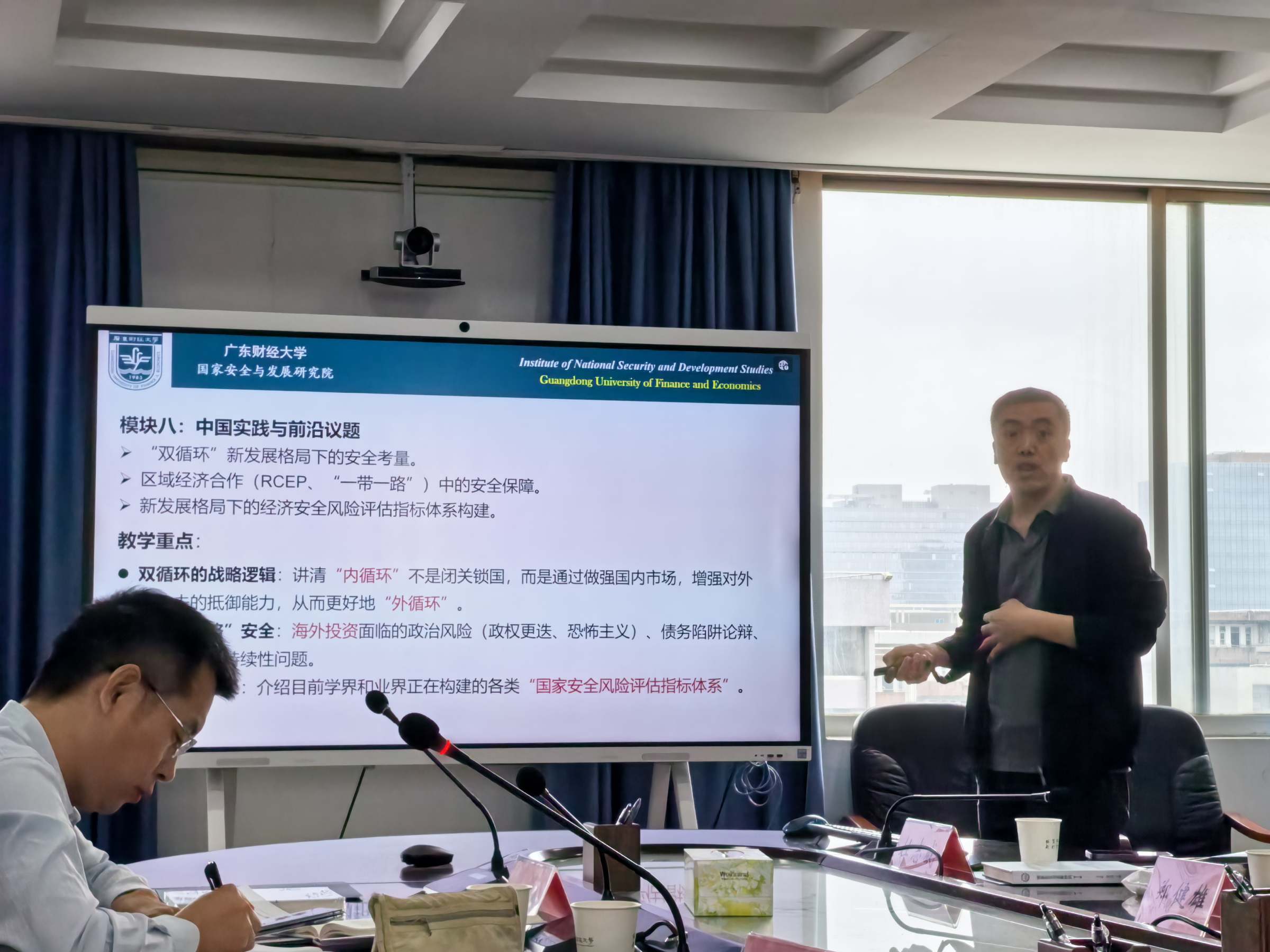 邹新月充分肯定教学团队的辛勤付出与创新精神,并对相关课程的教学内容和框架设计提出了具体指导意见。他指出,教学过程中要重视国家安全学课程内容的系统性和创新性,尤其要充分彰显我校经济安全和粤港澳大湾区的研究特色,从而形成具有广财标识度的国家安全学科特色。