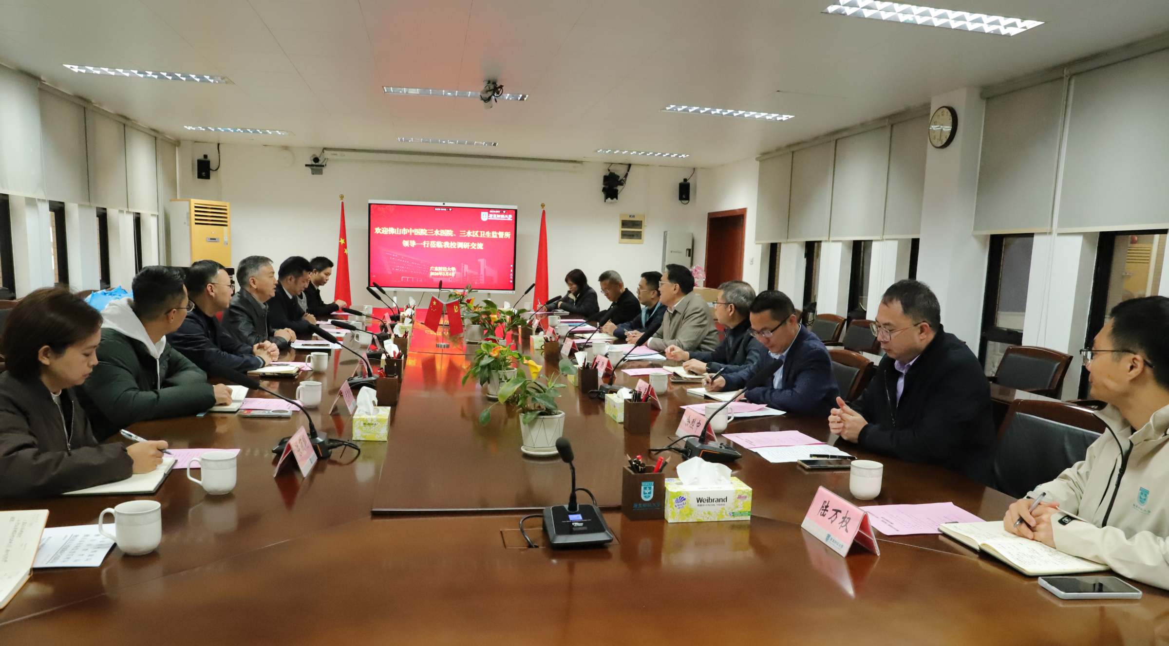 为深化校地卫生健康领域合作共建,携手打造平安健康校园,3月4日,佛山市中医院三水医院党委书记谭荣军、佛山市三水区卫生监督所所长陈卓荣带队到佛山校区调研交流。佛山校区党委书记、佛山校区工作部部长刘大鹏及工作部班子成员,学工部、门诊部相关负责人参加交流。