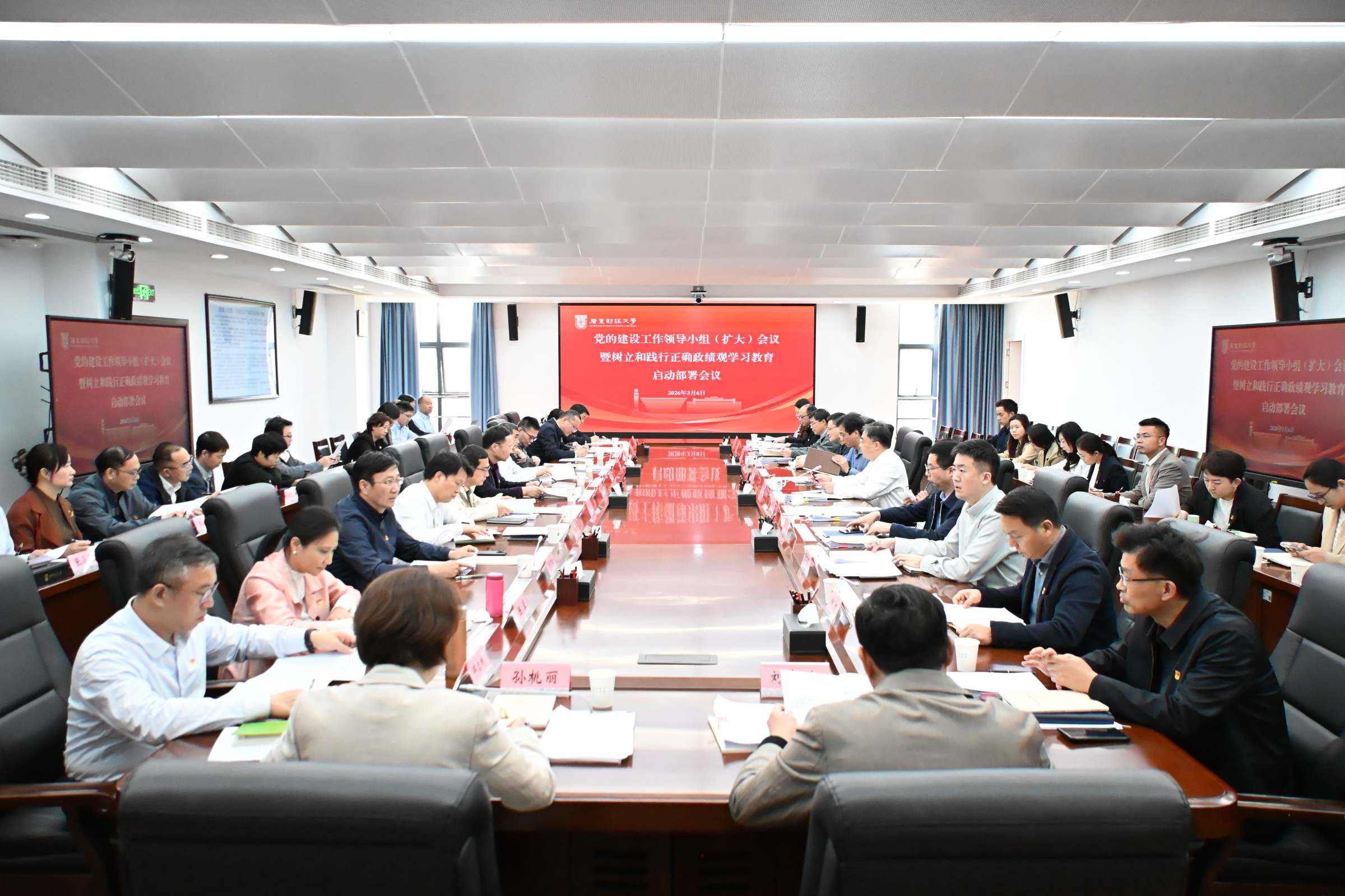 会议指出,在全党开展树立和践行正确政绩观学习教育,是党中央着眼党和国家事业发展全局作出的重要部署,对于推动“十五五”开好局、起好步,为以中国式现代化全面推进强国建设、民族复兴伟业提供有力保障,具有重大而深远的意义。全校上下要深入学习习近平总书记关于树立和践行正确政绩观的重要论述,深刻认识树立和践行正确政绩观对于党和国家事业发展、党的建设的重要意义,迅速把思想和行动统一到党中央和省委的决策部署上来,抓好学习教育各项任务落实,深入查找和纠治政绩观偏差,以正确政绩观为引领,真抓实干、担当作为,创造经得起实践、人民、历史检验的实绩,奋力推进大湾区一流财经大学建设。