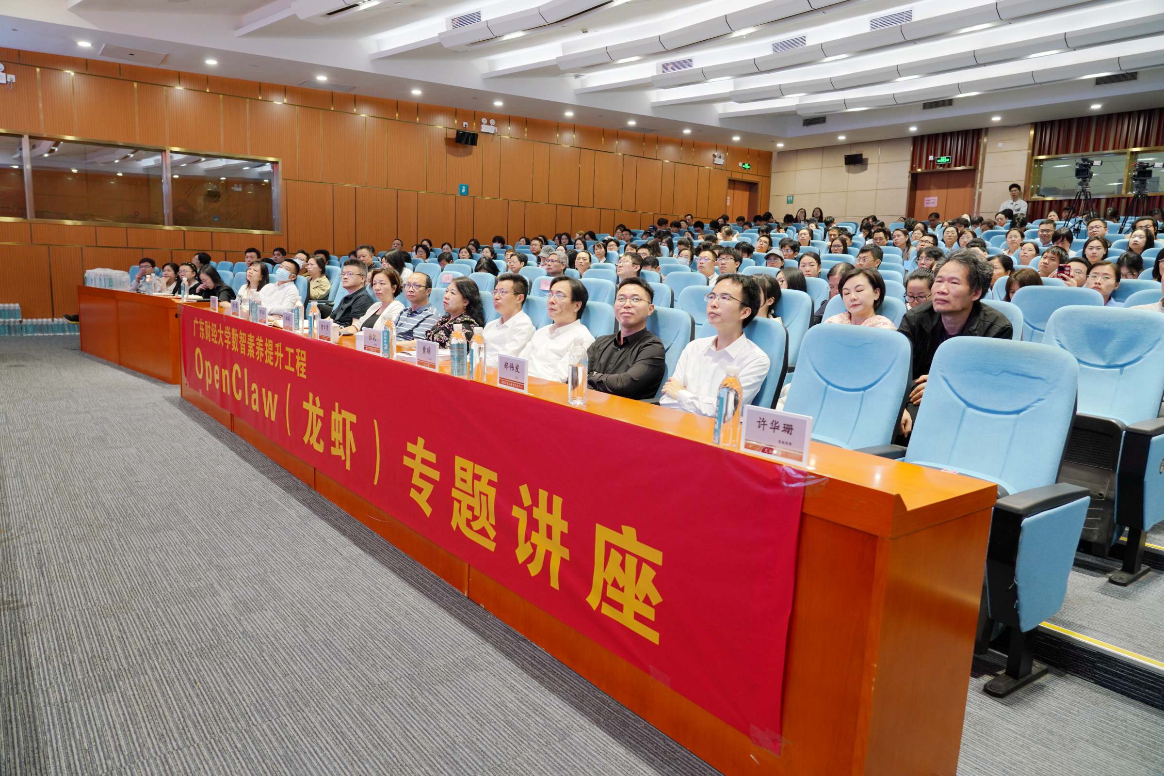 3月19日上午,学校在两校区同步举办数智素养提升工程——OpenClaw(龙虾)专题讲座,主会场设在广州校区正心堂,佛山校区同心楼111报告厅设分会场。校长童士清、副校长张凯,宣传统战部、人力资源部等相关职能部门负责人,近400名师生参加讲座。网络信息与教育技术中心主任郑伟发主持讲座。