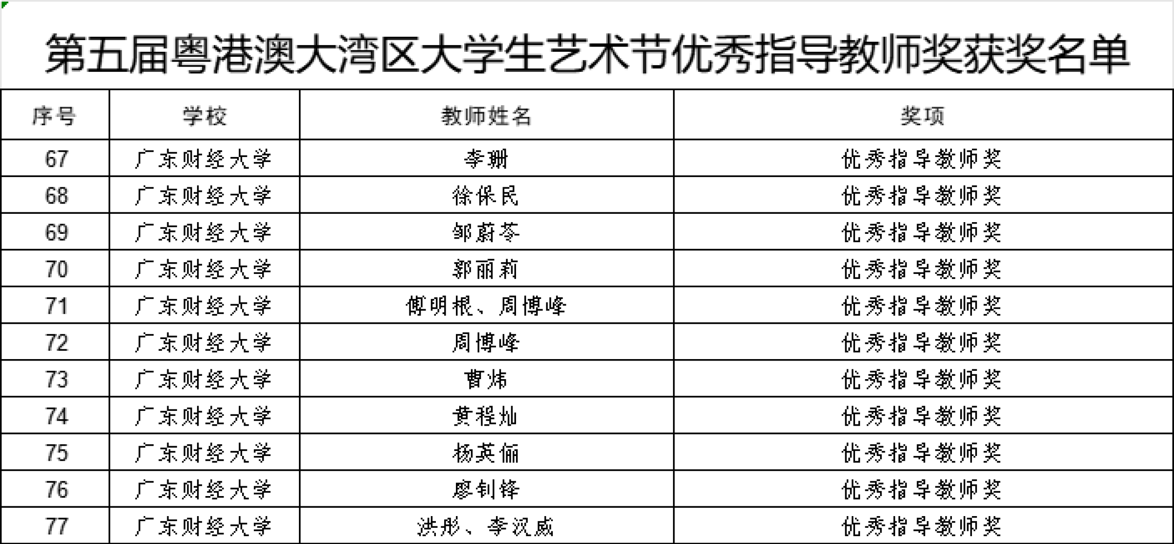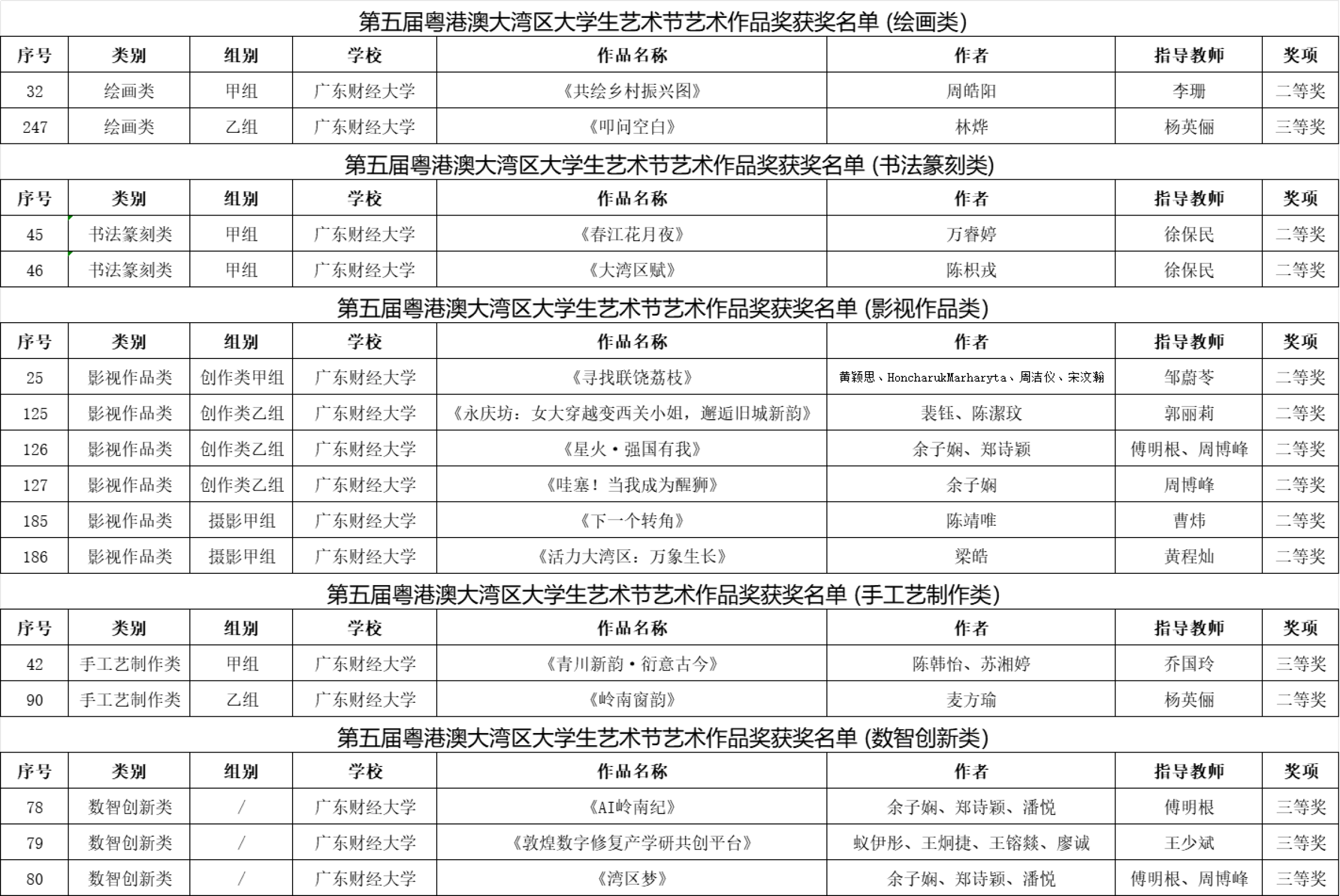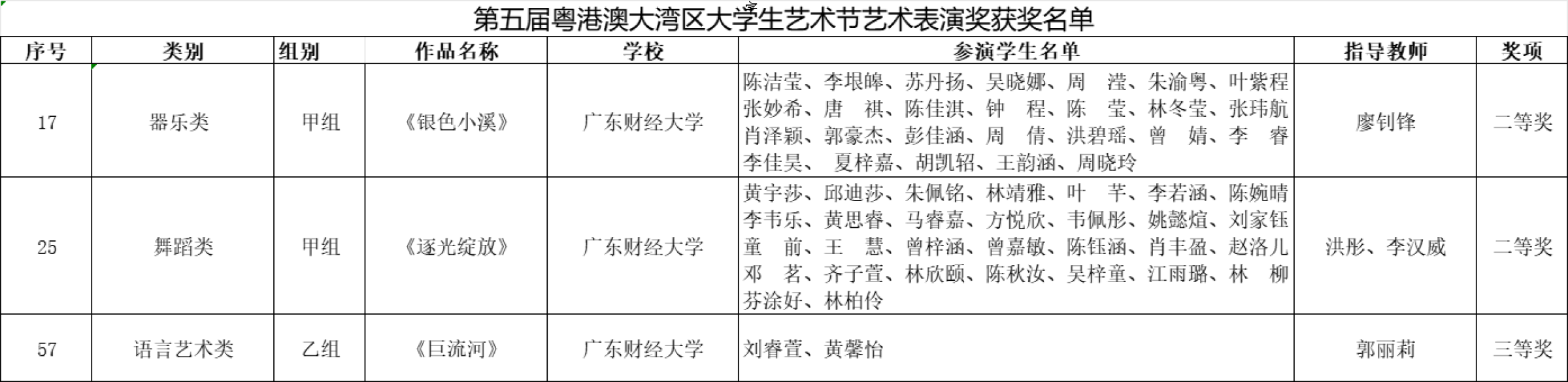 近日,广东省教育厅公布了第五届粤港澳大湾区大学生艺术节获奖名单,我校学子凭借扎实的艺术素养、出色的创作实力与饱满的青春风貌荣获佳绩。
