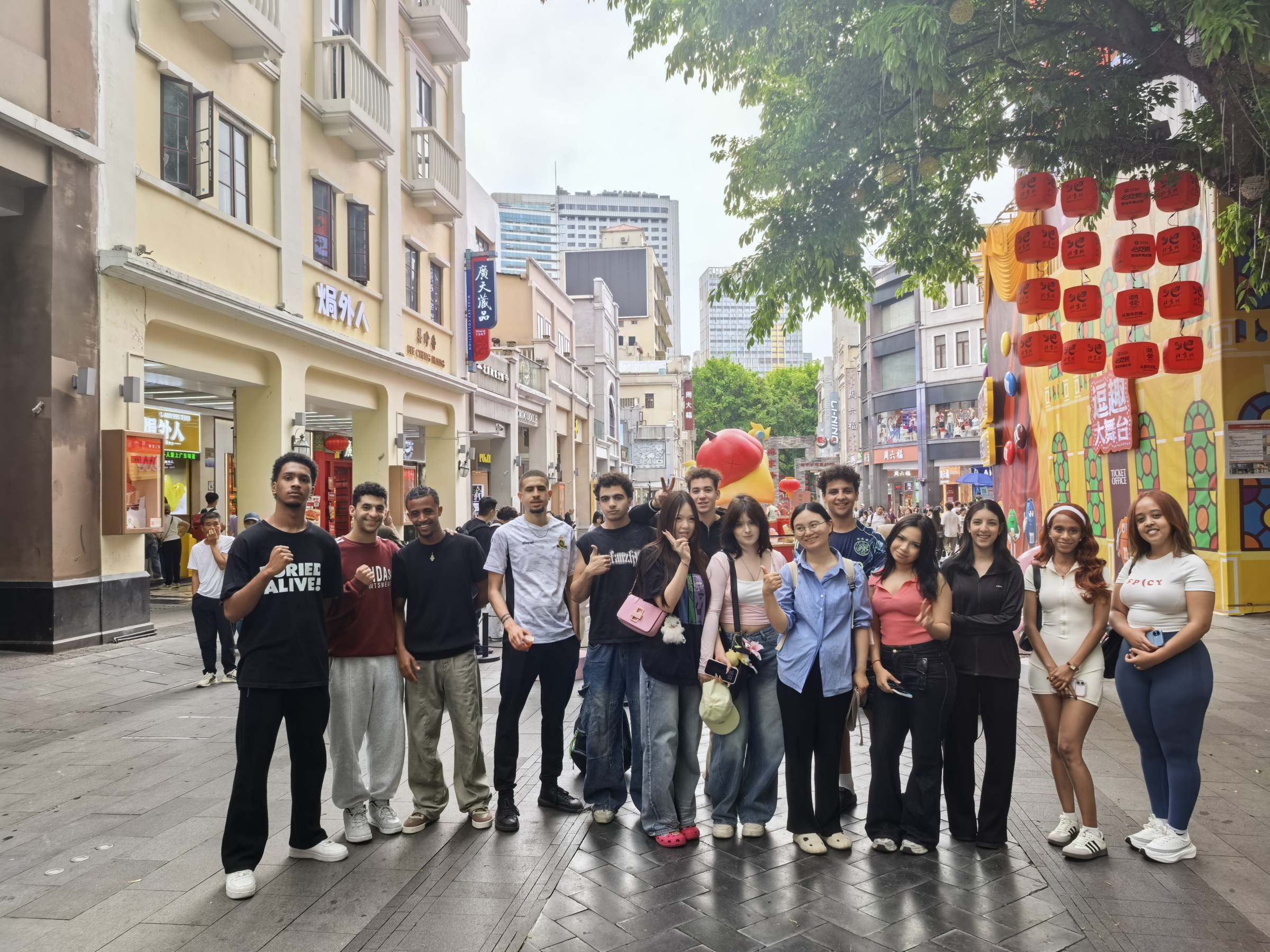 在社区文化体验环节,曹康莉老师带领留学生参观了传统骑楼建筑、商务印书馆广州分馆旧址等文化地标,实地感受历史街区的建筑风貌与文化传承。体验期间,社区幼儿园在北京路举办环保宣传活动,留学生们积极参与活动签名倡议,并与师生热情交流,了解基层环保教育的具体开展情况。这种直接的社区互动,使留学生亲身体验了中国基层的文化活力,见证了历史街区中传统文化传承与当代社区生活的有机融合。
