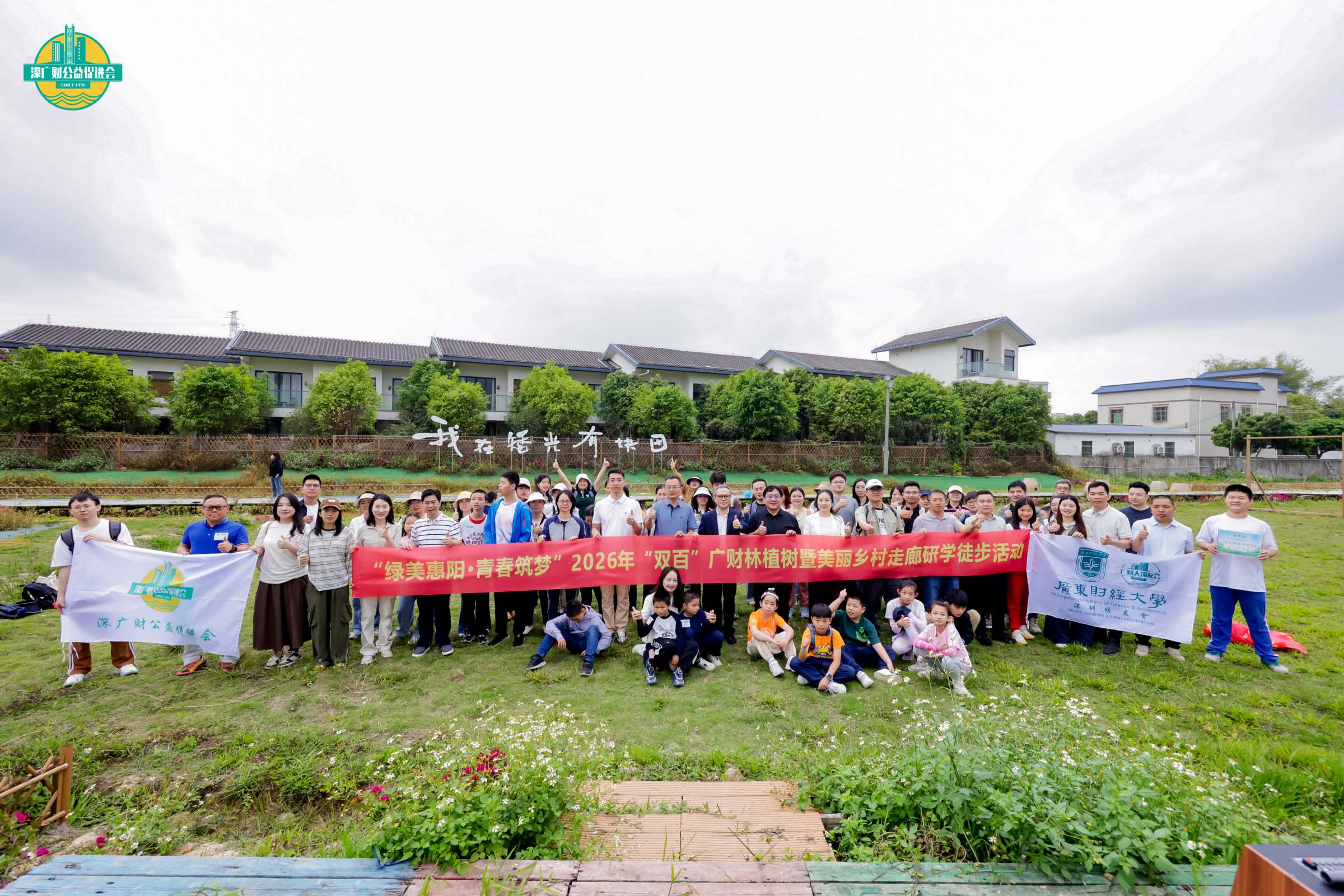 3月28日,“绿美惠阳·青春筑梦”2026年“双百”广财林植树暨美丽乡村走廊研学徒步活动在惠阳区良井镇举行。我校党委组织部、校友工作与社会合作办公室,惠阳区委组织部、区教育局、团区委、良井镇及“双百行动”驻区服务队等相关单位负责人,广财大深圳校友和惠州校友、惠阳区青企协代表,以及深圳守望协会代表等近100人参加活动。
