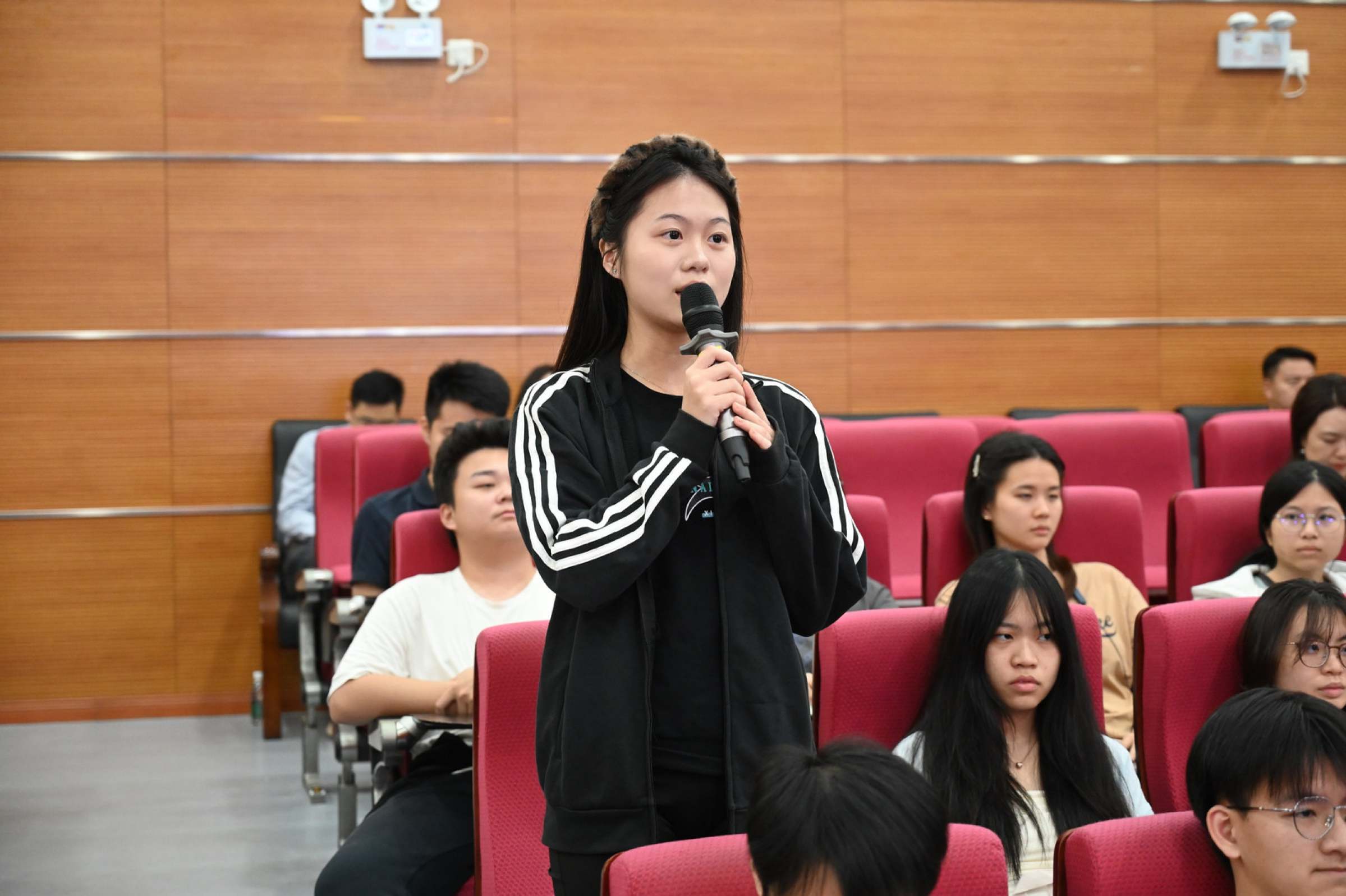 课上,我校“双百行动”驻兴宁服务队队长周琪锋分享了驻兴宁帮扶的具体实践。他结合一线工作经历,讲述校地协同推进产业赋能、人才培育、民生服务、文化传播等工作实效,展现广财力量助力乡村振兴的担当。他指出,“百千万工程”进程与青年成长同频共振,是宝贵的时代机遇,鼓励学子走进基层、躬身实践,以微小努力汇聚发展动能,让青春在服务地方中绽放光彩。