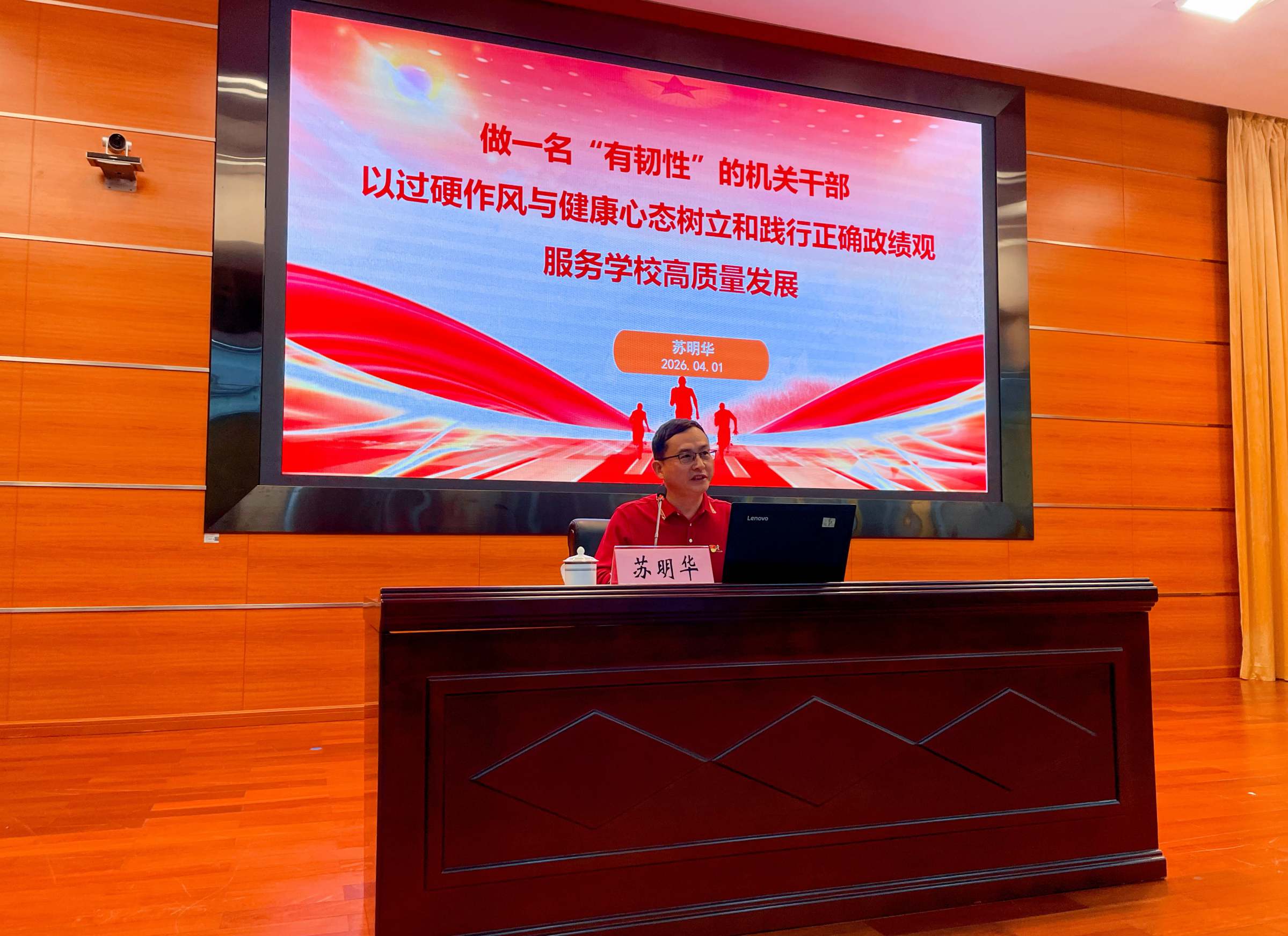 机关党委委员、学校正处级党建督导员苏明华作《做一名“有韧性”的机关干部,以过硬作风与健康心态树立和践行正确政绩观服务学校高质量发展》专题辅导讲座。他指出机关干部兼具执行者与管理者身份,需同步锤炼过硬作风与健康心态,号召机关干部以作风为底线、以心态为底气,既做“靠谱”干部扎实履职,也做“快乐”干部平衡身心,为学校高质量发展贡献青春力量。