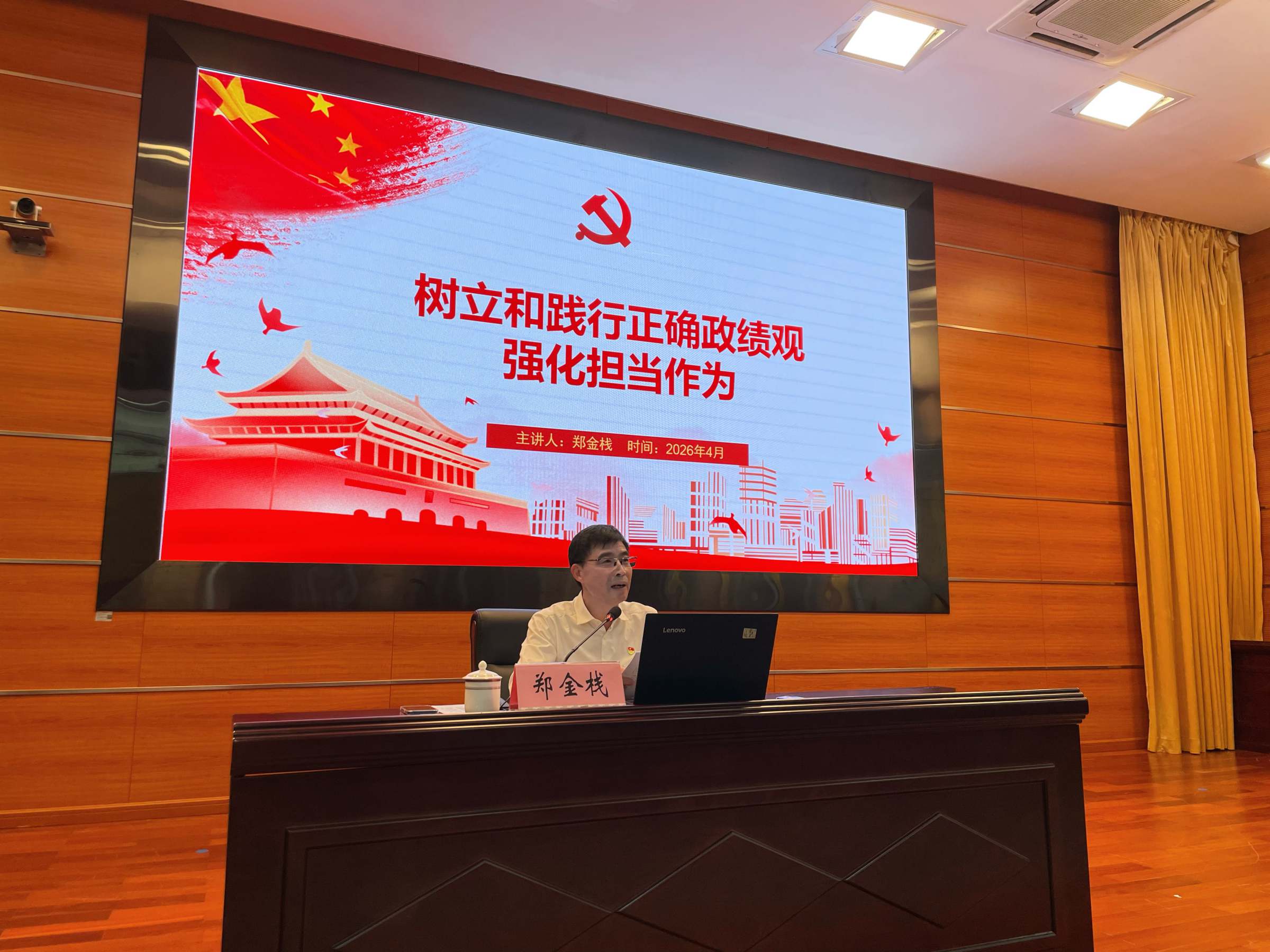 郑金栈作《树立和践行正确政绩观,强化担当作为》的专题辅导报告。他系统讲授了在全党开展树立和践行正确政绩观学习教育的重大意义、总要求,并结合学校发展形势,引导党员干部回答好政绩“为谁树、树什么、靠什么”三问,并从“立党为公、为民造福、科学决策、真抓实干”四个方面逐一梳理政绩观偏差问题,要求干部自我检视、加以整改落实,以“功成不必在我、功成必定有我”的担当精神,助力学校高质量发展。