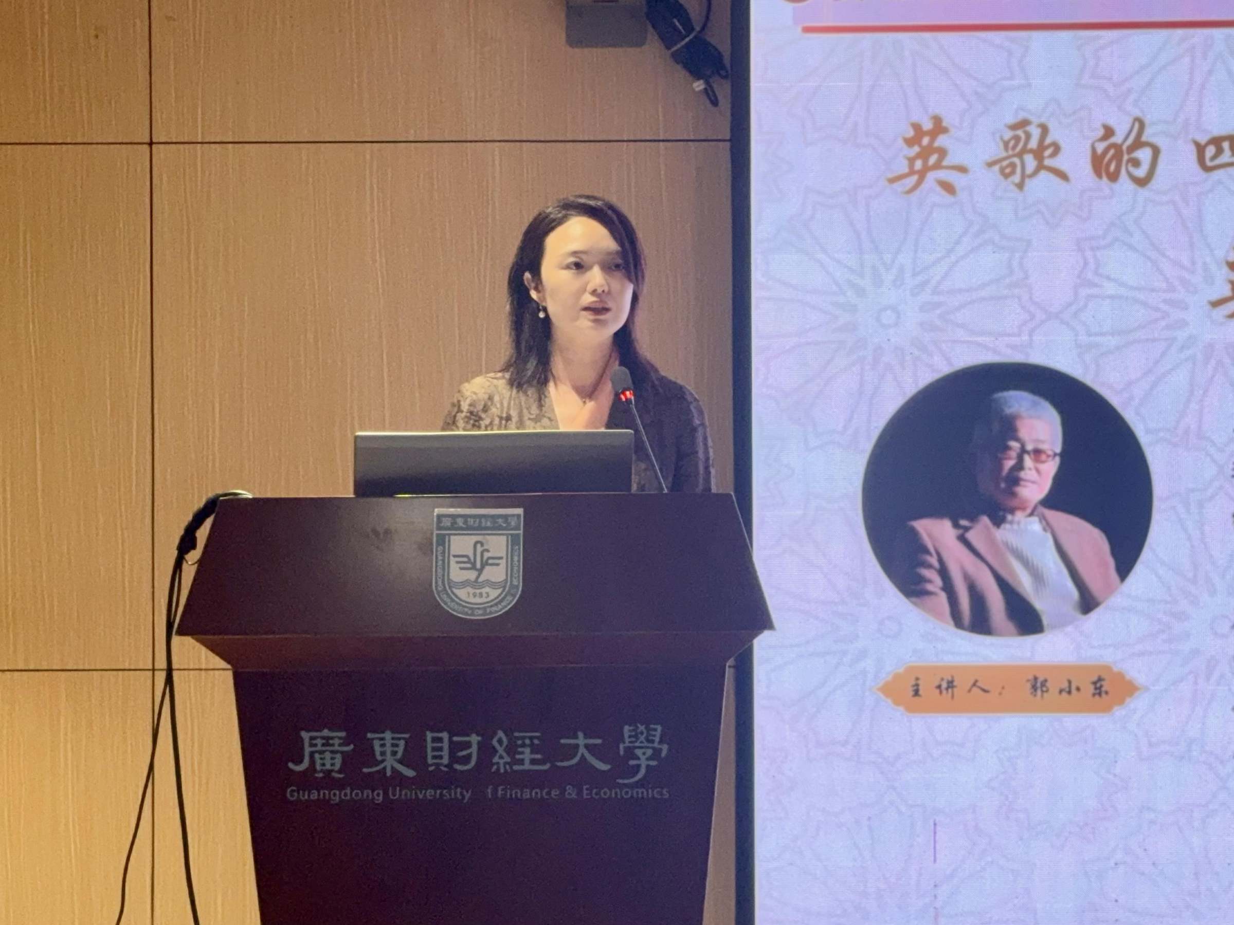 潘苏在致辞中对郭小东教授的到来表示热烈欢迎。她表示,近年来潮汕英歌舞火爆出圈,成为极具代表性的岭南非遗文化名片。本期美育名家大讲坛以非遗英歌舞为主题,旨在将最鲜活、最地道的岭南文化引入校园,让同学们近距离感受非遗艺术的独特魅力。