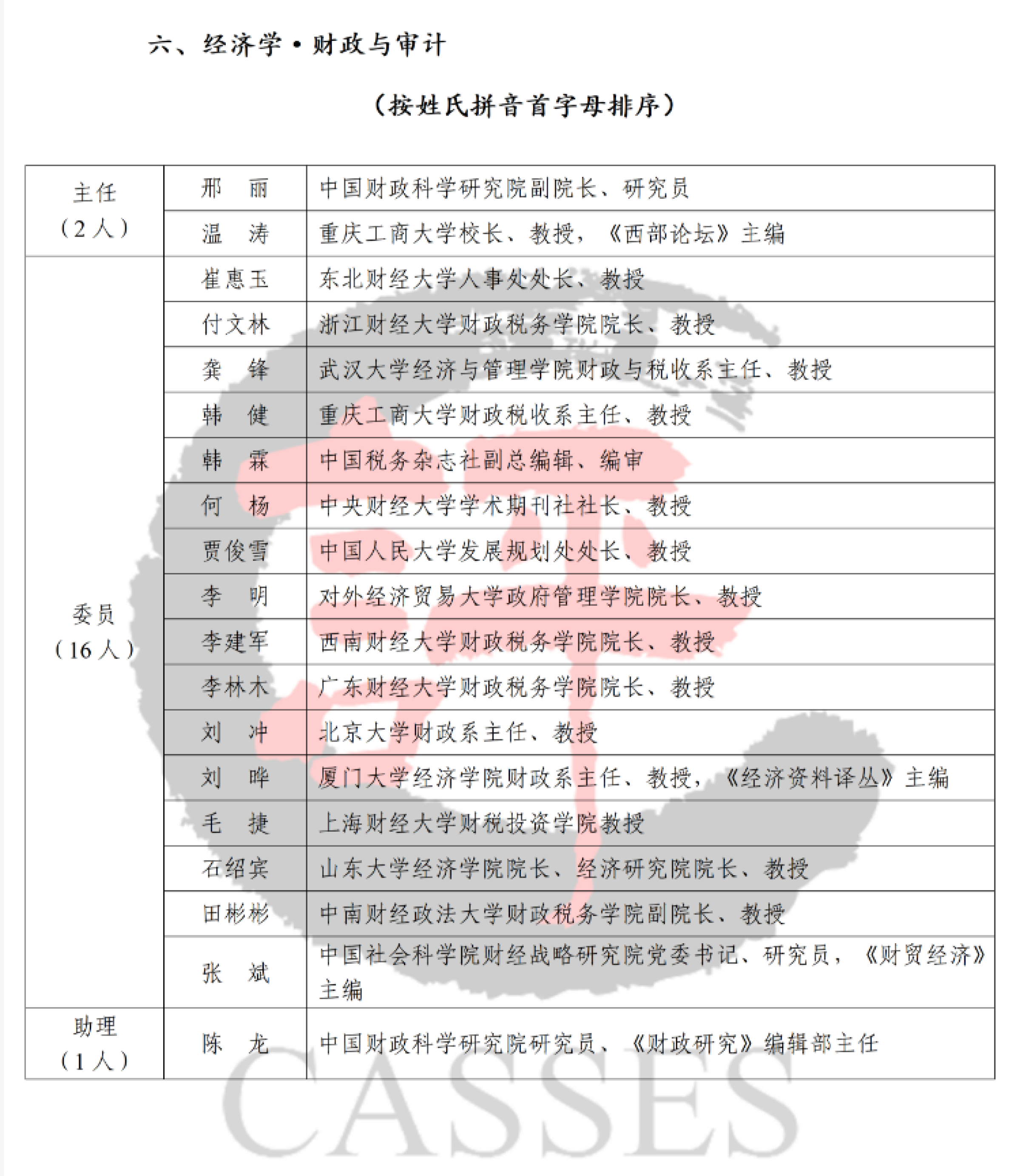 新一届经济学·财政与审计专家委员会由来自全国科研机构、高等院校及期刊出版单位的19名知名专家组成,其中主任2人,委员16人,助理1人。我校财政税务学院院长李林木教授当选为委员。