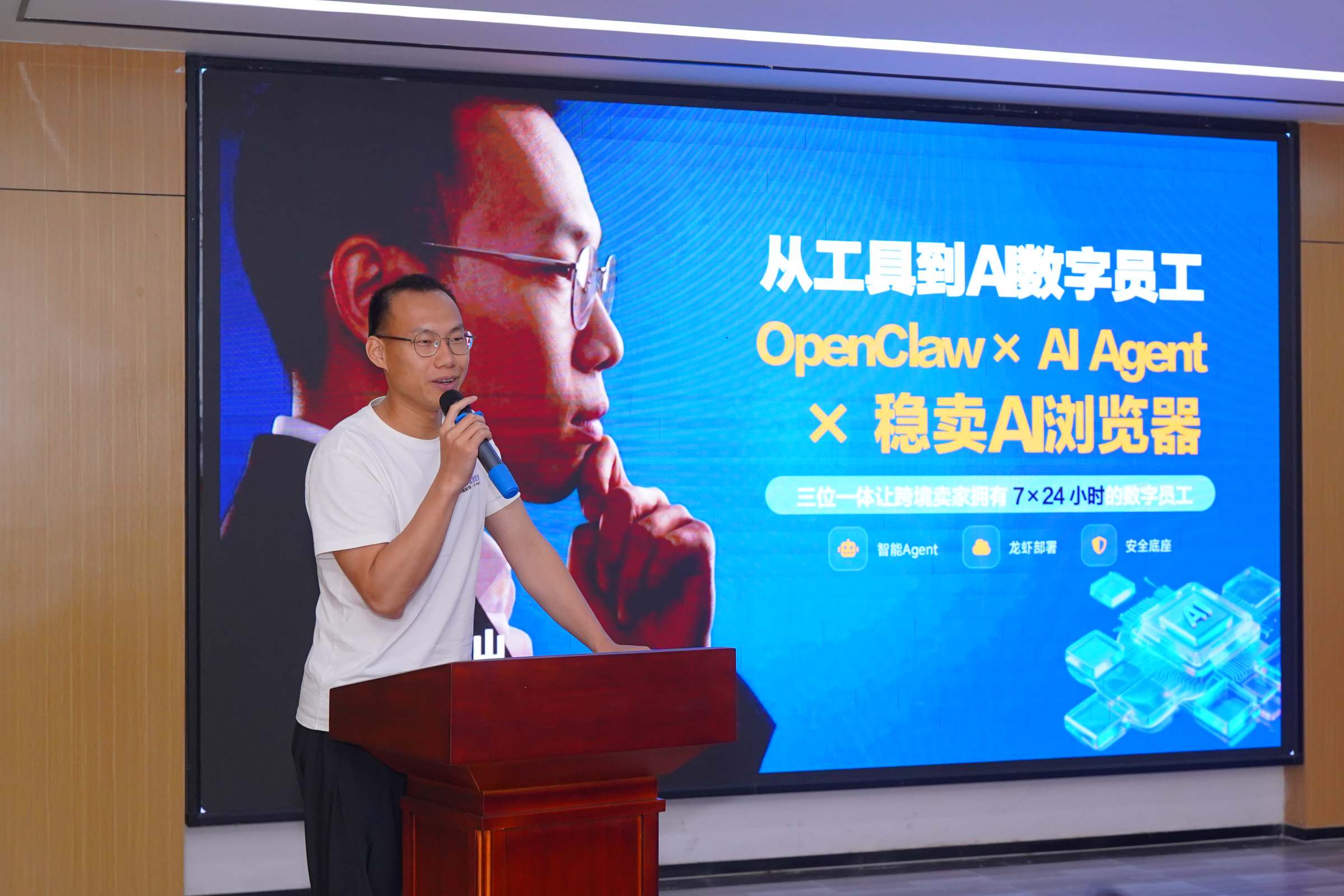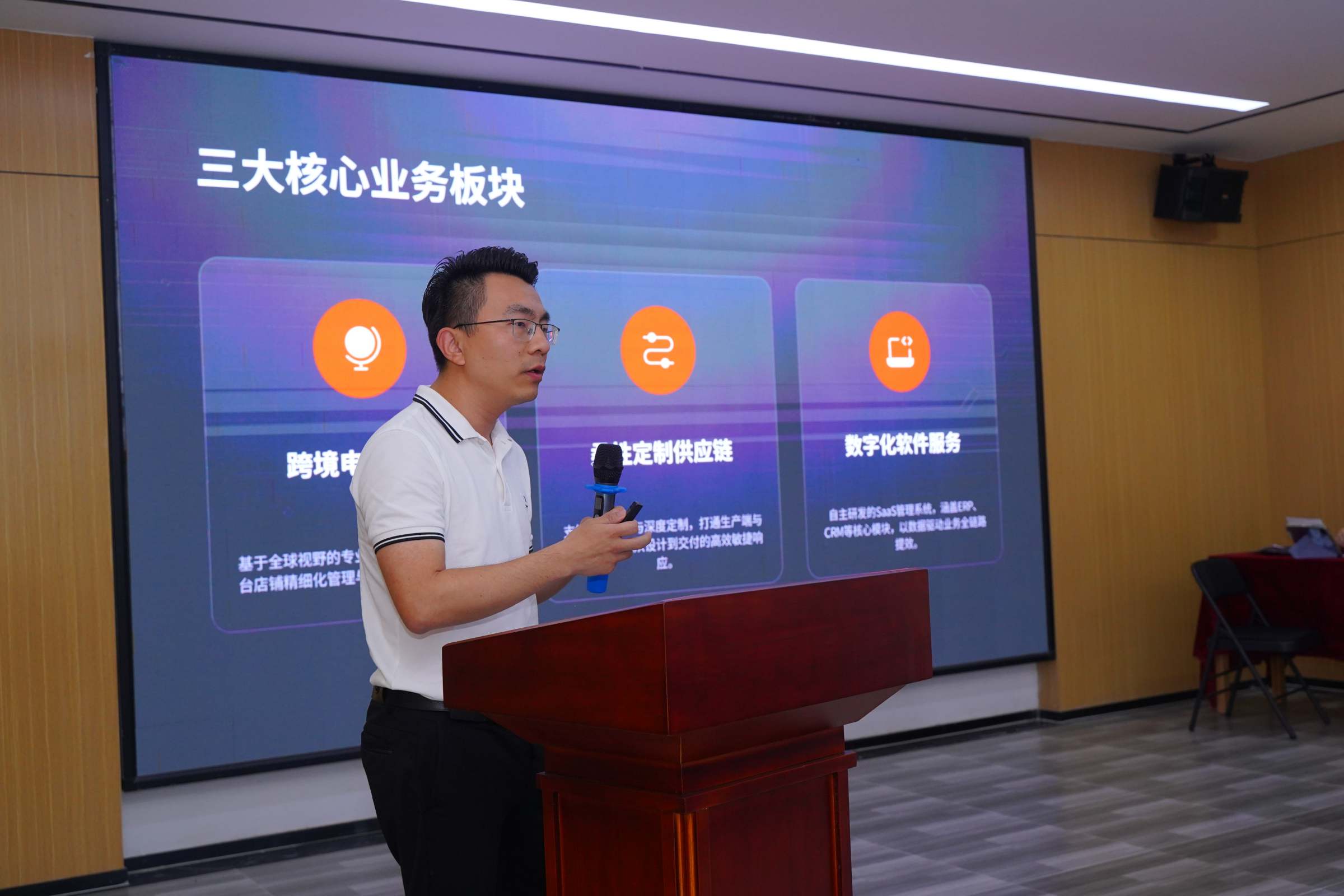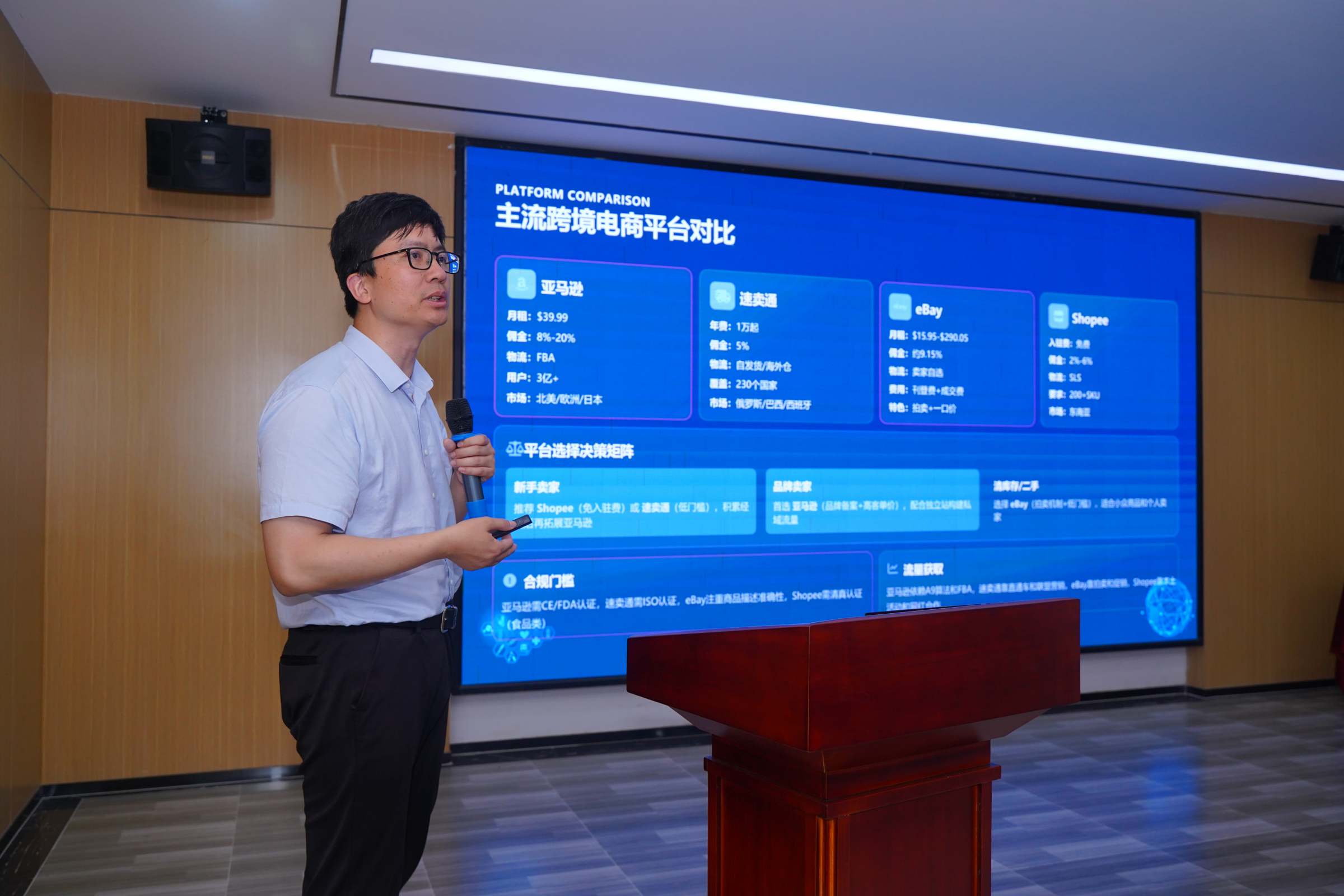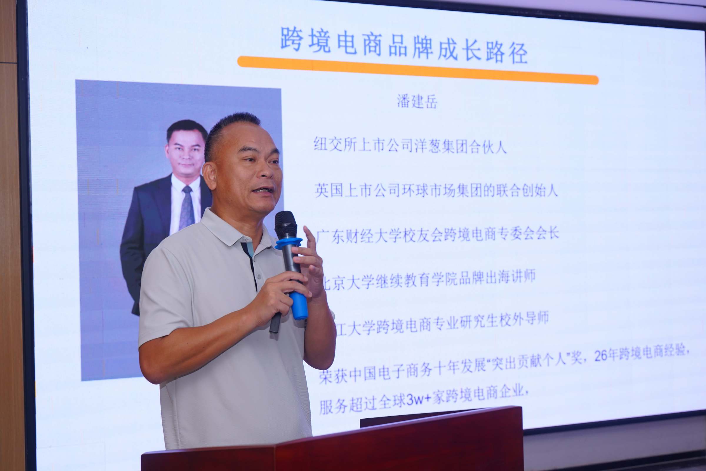 在主题分享环节,广东财经大学国际商学院肖炯恩副教授、校友会跨境电商专委会会长潘建岳校友、稳卖AI浏览器负责人李玉山校友、广东超凡信息科技有限公司负责人黄梓伦及惠州市禹链科技有限公司负责人曾广深,分别围绕跨境电商趋势、POD模式、AI工具应用、企业实战经验等主题进行分享。