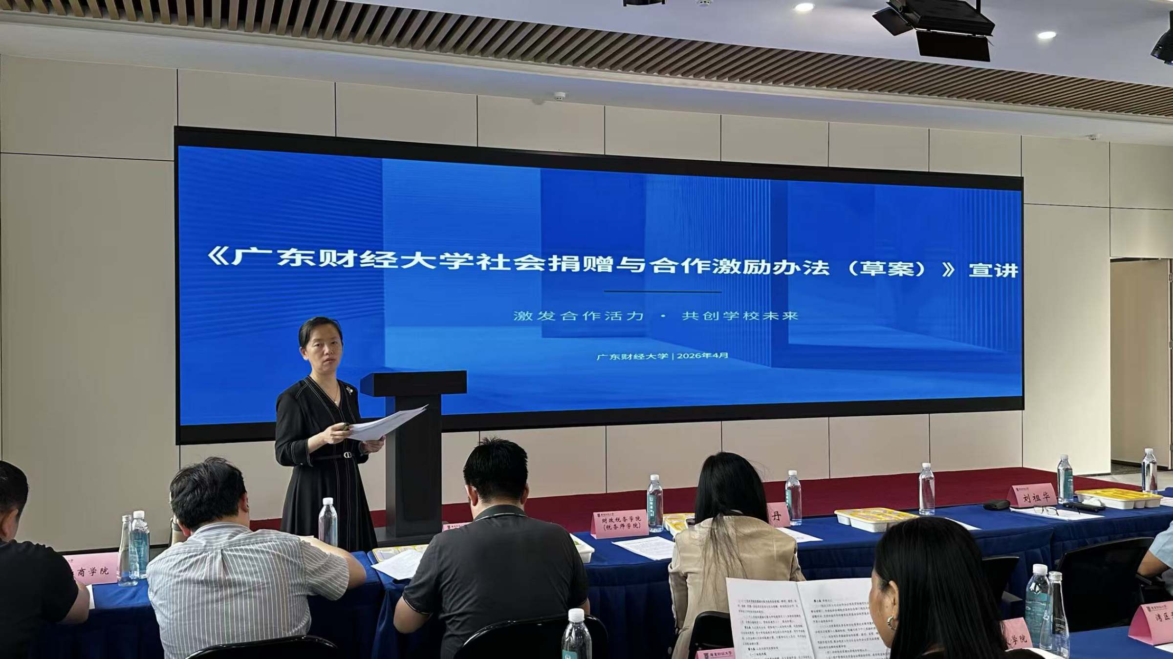 座谈会上,校友工作与社会合作办公室主任段丹详细解读了《广东财经大学国内合作管理办法》,并就《广东财经大学社会捐赠与合作激励办法(征求意见稿)》向与会人员征求了意见建议。与会代表围绕深化校地协同、拓展社会资源、完善激励机制等话题展开交流,为学校进一步提升开放办学水平建言献策。