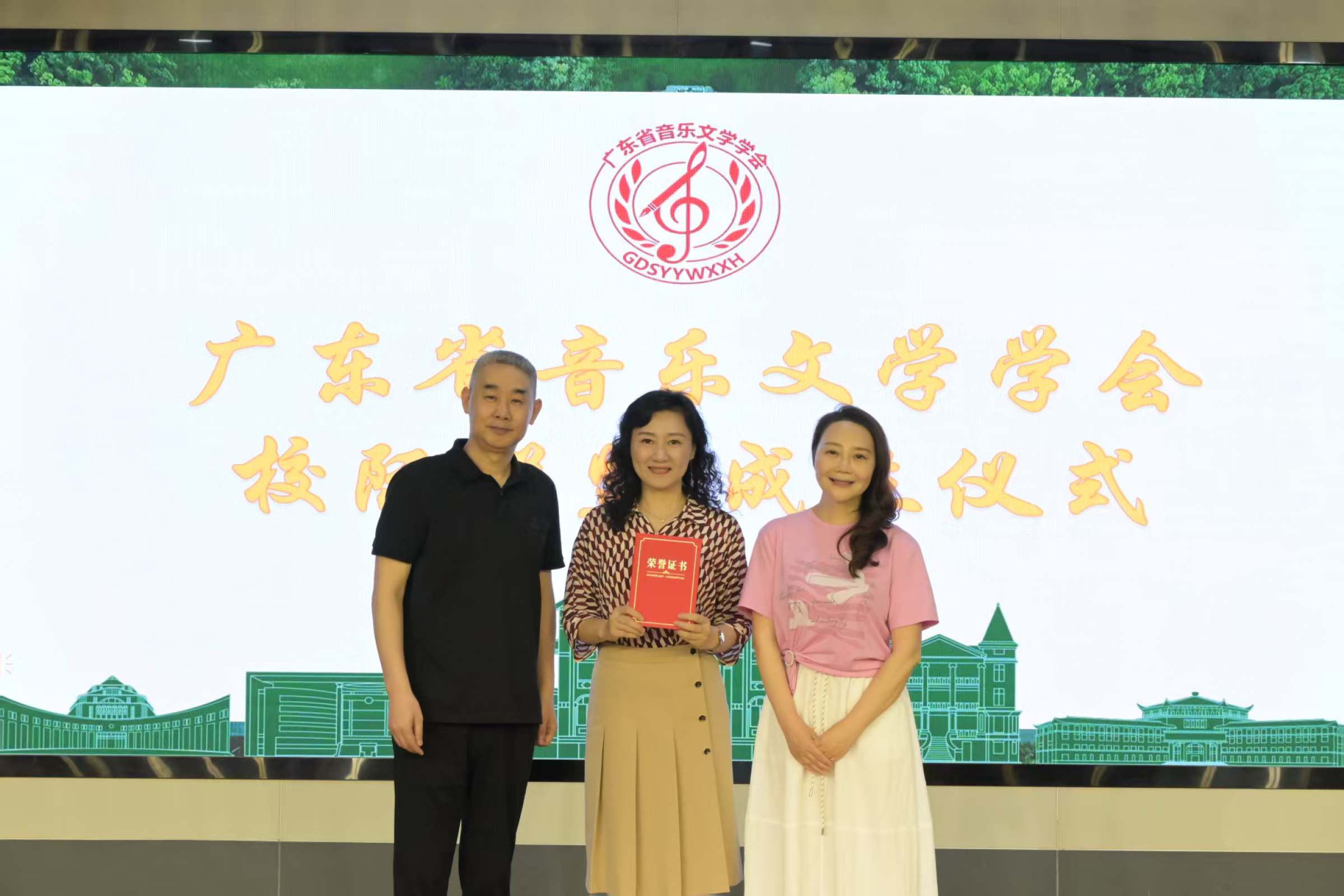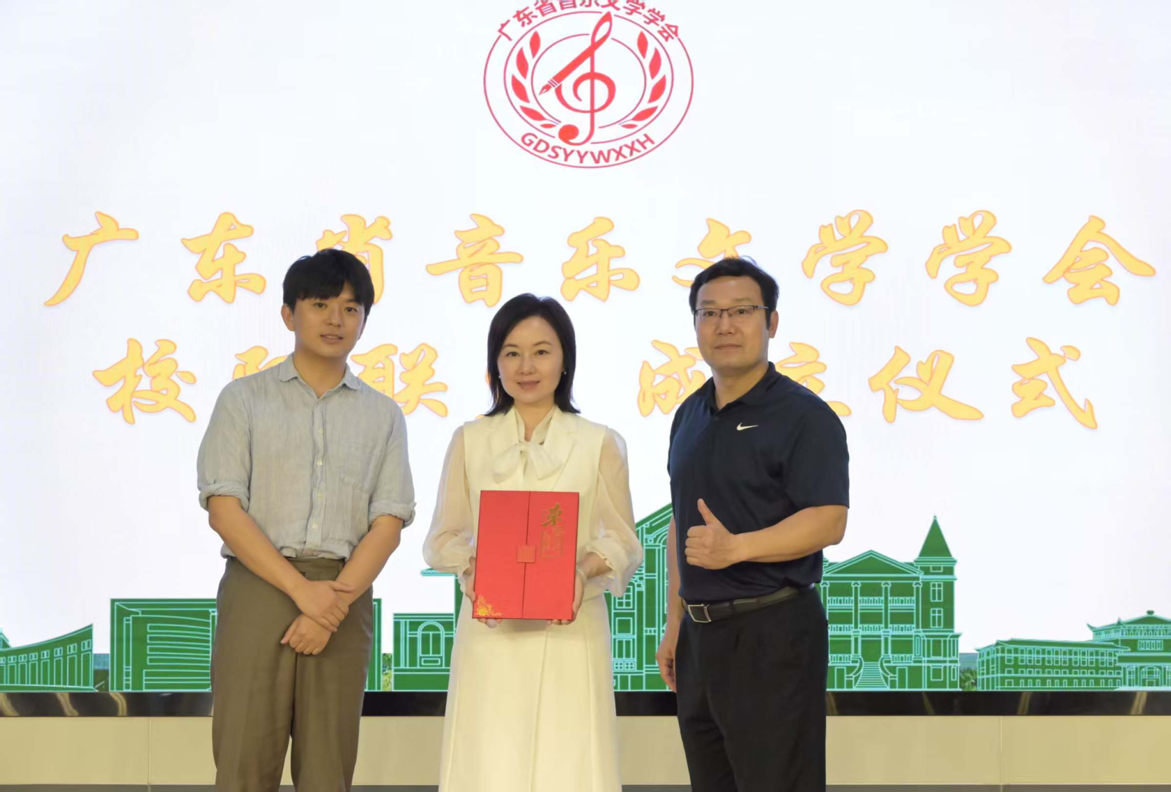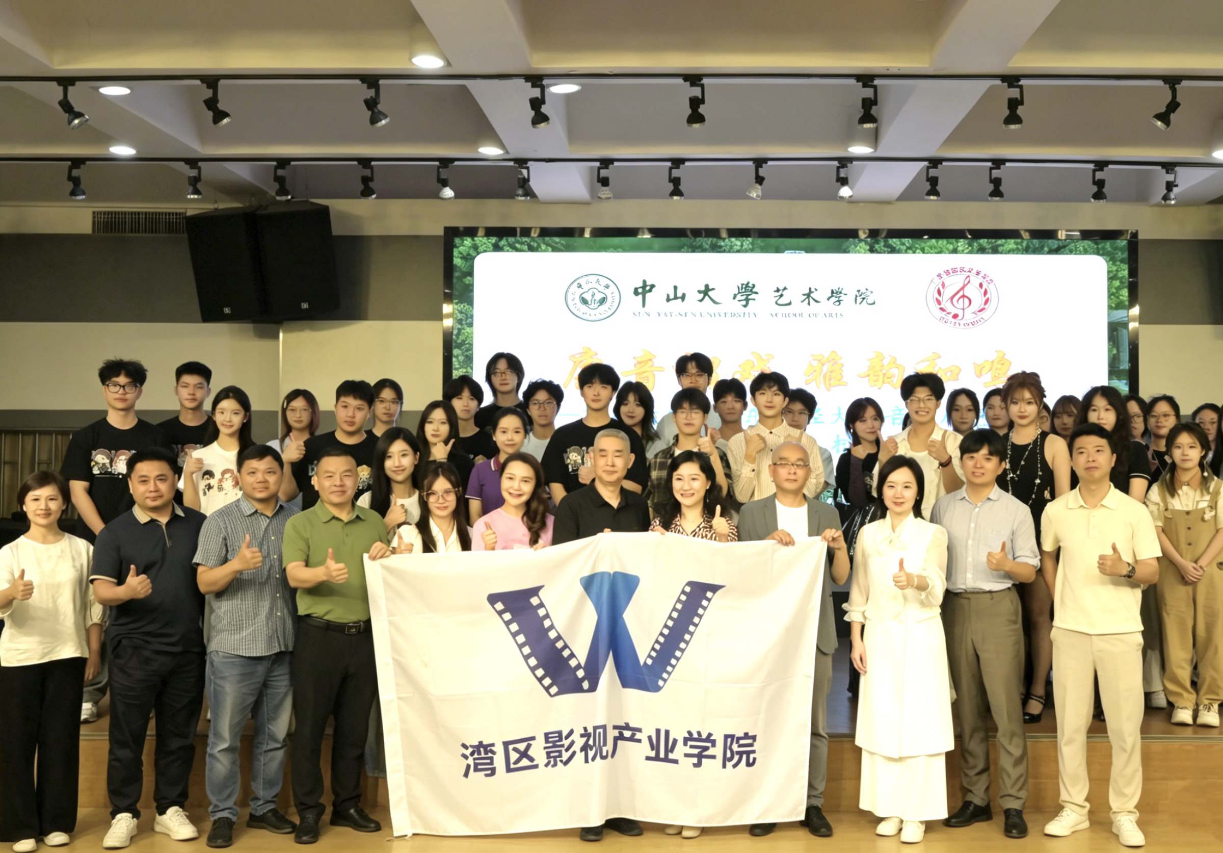 活动开始前,广东省音乐文学学会会长苏虎、中山大学艺术学院党委副书记林小敏、中山大学艺术学院流行音乐研究中心徐红、我校湾区影视产业学院党委副书记路军奉、教师代表马琪君、孙鹏飞等共同见证了广东省音乐文学学会·校际联盟成立仪式。