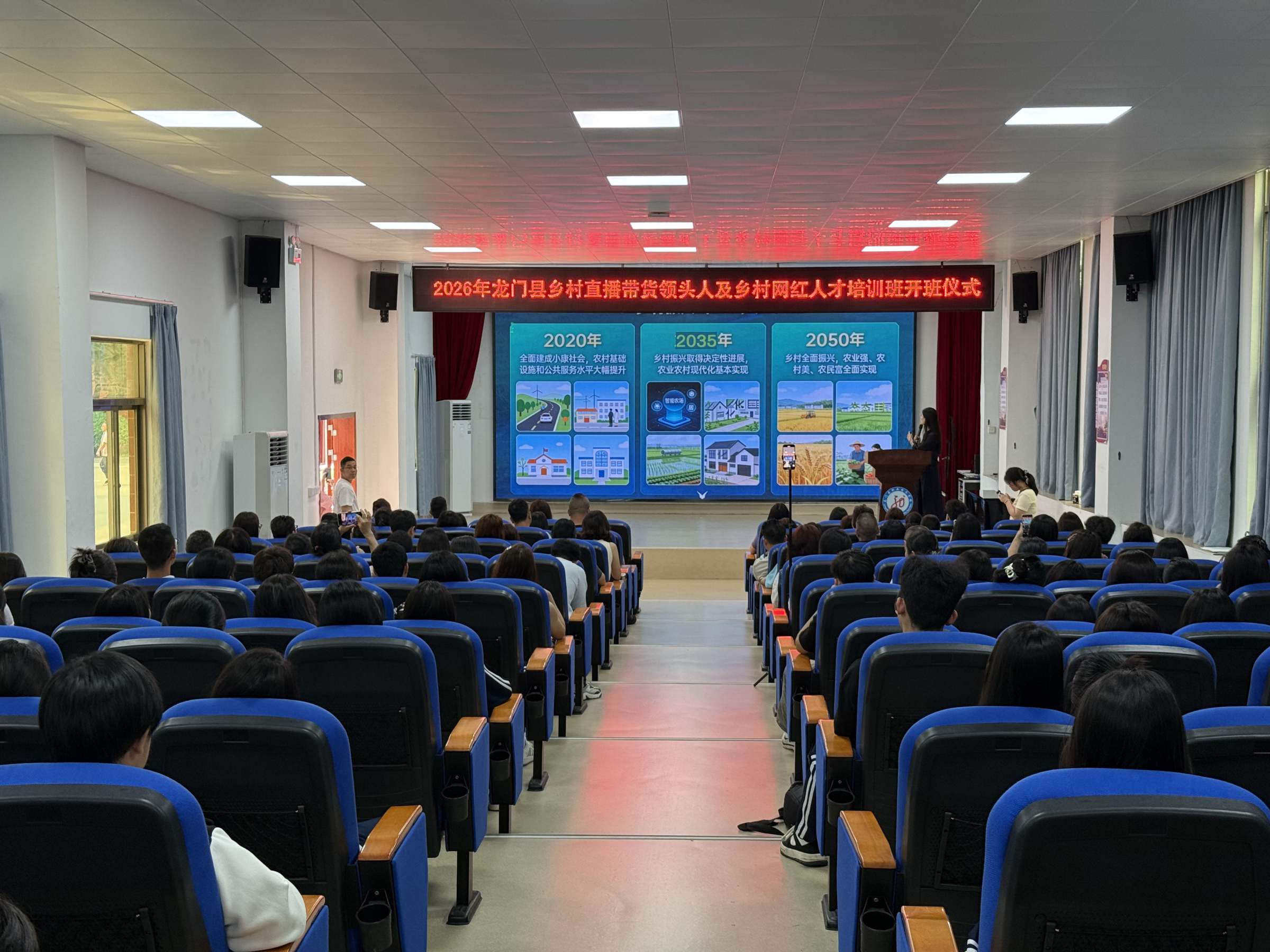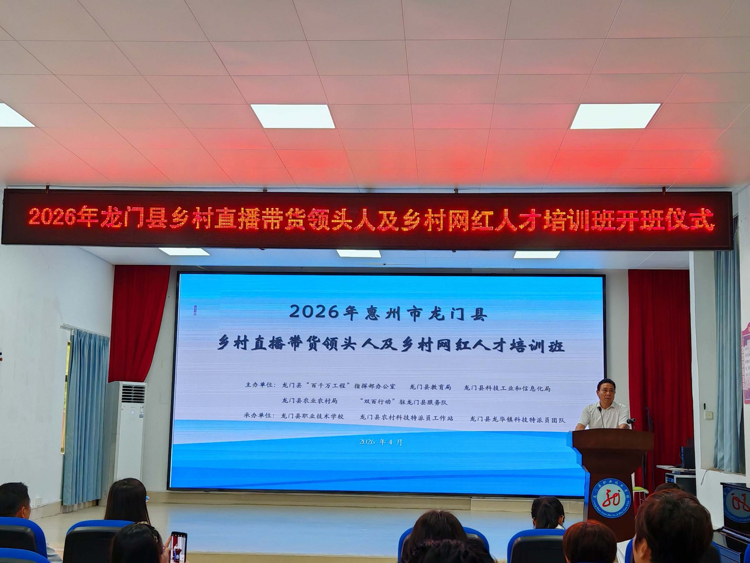 4月13日至14日,“2026年龙门县乡村直播带货领头人及乡村网红人才培训班”在龙门职业技术学校举办。本次活动由广东财经大学牵头,龙门县“百千万工程”指挥办、县教育局、县科技工业和信息化局、“双百行动”驻县服务队主办,龙门职业技术学校、龙门农村科技特派员工作站、龙华镇农村科技特派员团队共同承办。活动邀请了我校人文与传播学院(网络学院、出版学院)朱立芳老师团队主讲。来自全县各乡镇、涉农行业企业共60多名乡村电商骨干参加了培训。