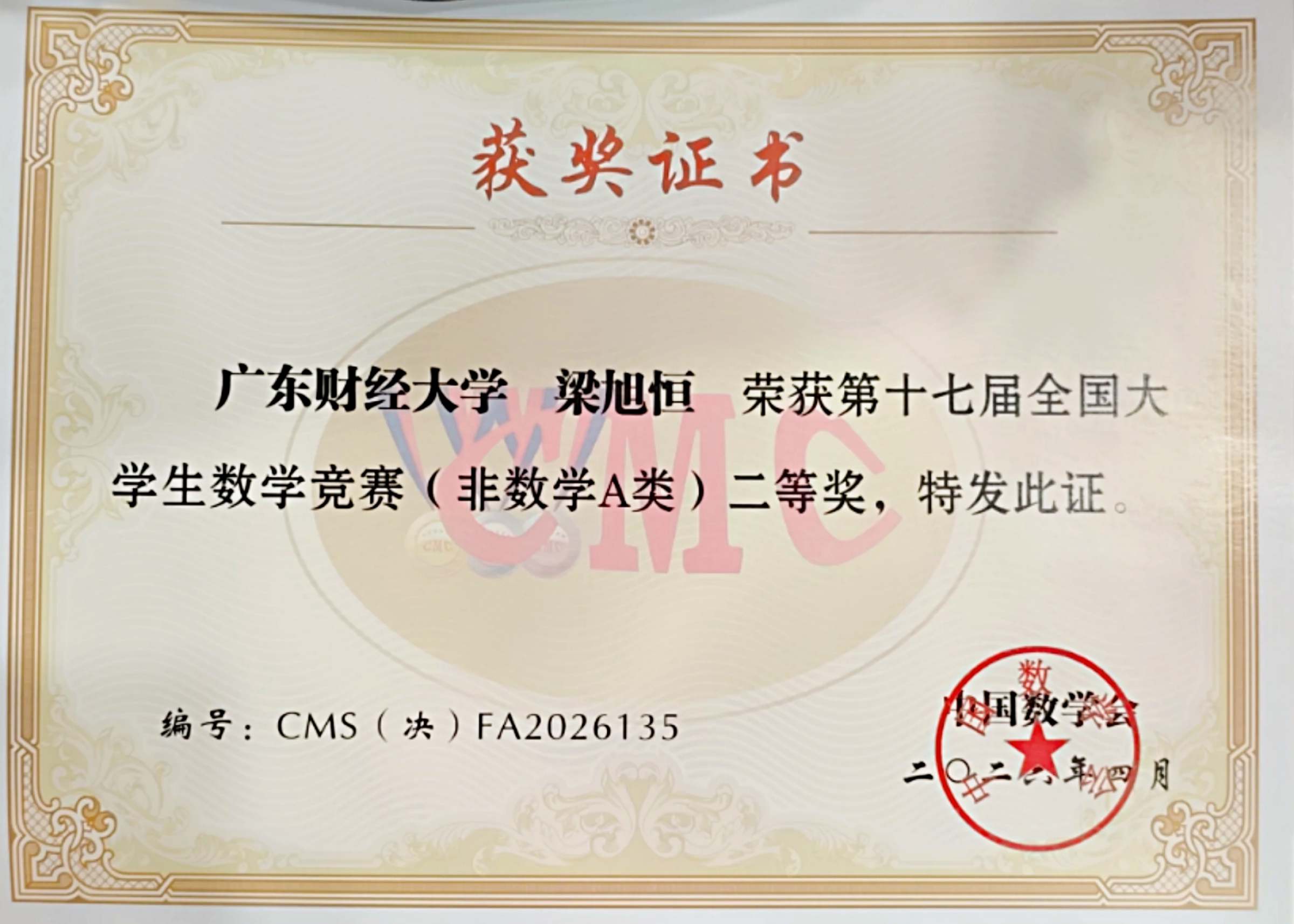 我校统计与数据科学学院数学竞赛指导团队精心组织各项培训和省赛活动, 2024级计算机科学与技术专业梁旭恒同学脱颖而出参加决赛,与众多“双一流”高校学子同场竞技,最终获得非数学专业组国家二等奖。