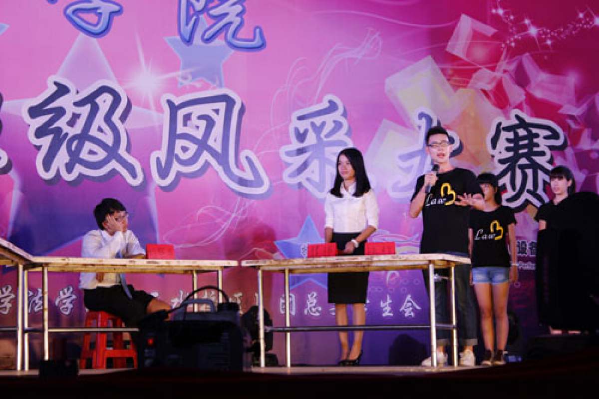 首先登台的治安班演绎了一出《包青天重审彭宇案》的穿越剧,引发大家思考法制与道德问题。法学3班人情味与法律性兼备,用多样的形式演绎《law Sunshine》。在《一场诈骗案带来的光芒》中,法学2班极富喜剧色彩的表演,让观众眼前一亮。法学1班的《家,用爱说出来》把家庭亲情的温馨带给在座的每个观众。而法学5班的《年代秀》魔术、歌曲串烧齐上阵,诠释了中国法制的进步之路。各班级表演多样、充满创意,节目既展示了班级风采,又体现了对法学精神的解读。
