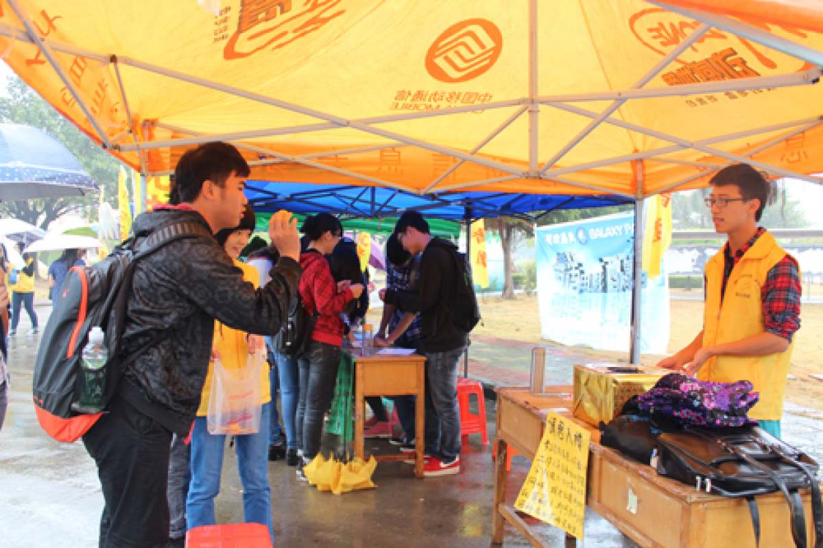 11月5日,三水校区记者团在中心花园十字路口举办以“環视”为主题的第四届记者节活动。纵使天公不作美,活动仍然吸引了众多同学驻足参与。