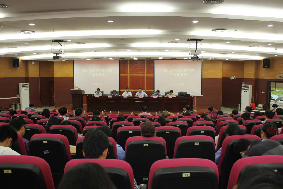 9月2日上午,佛山三水校区在图书馆学术报告厅召开新学期工作布置会议。校党委副书记吴琦,校区管委会党政班子成员,全体管理岗、专业技术人员等170余人参加了会议。会议由校区党委书记、管委会常务副主任陈廷根主持。