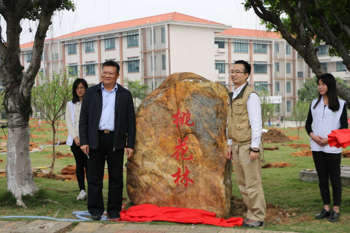 校党委副书记吴琦和校友会副会长林赟共同为“桃花林”纪念石揭幕