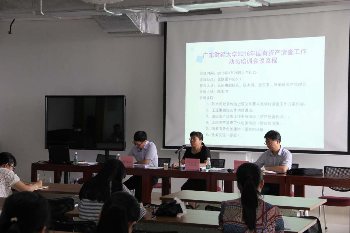 5月26日上午,学校国有资产清查工作动员培训会在广州校区北区图书馆801举行。副校长王廷惠、全校各单位资产管理员及有关人员等参加会议。会议由资产处处长陈木河主持。